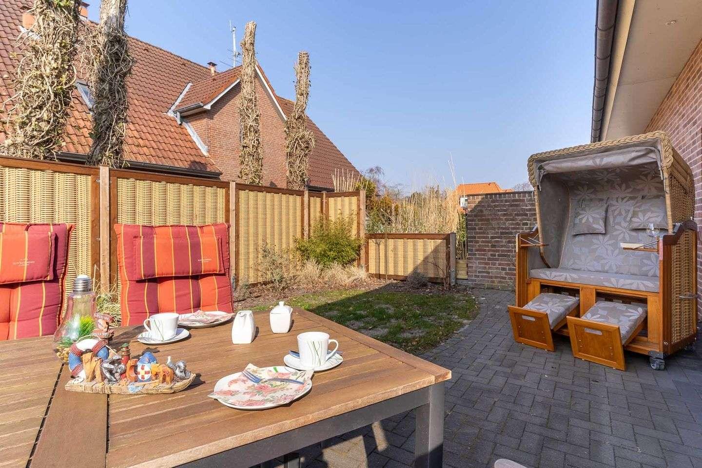 Sie betreten die Wohnung über einen eigenen Hauseingang und gelangen in den geräumigen Wohn-Essbereich mit einer umfangreich ausgestatteten offenen Küche. Daran schließt sich ein Esstisch für zwei Personen an. Von hier aus und dem Wohnbereich mit Fernseher blicken Sie zur Terrasse, die ausgestattet mit Gartenmöbeln und Strandkorb nach draußen lockt. Ein Frühstück unter freiem Himmel und das ein oder andere Sonnenbad lassen hier den Alltag vergessen. Mit dem vorhandenen Elektrogrill komplettieren Sie Ihre Mahlzeiten. Bitte beachten Sie, dass jedoch keine Gas- oder Holzkohlegrill gestattet sind. Am Ende ereignisreicher Urlaubstage finden Sie Erholung in einem Schlafzimmer mit Boxspringbett (180cmx200cm). Das moderne, helle Bad begeistert mit einer ebenerdigen Dusche und Handtuchheizung. Ebendort steht eine Waschmaschine für Sie zur Nutzung (ohne Aufpreis) bereit.