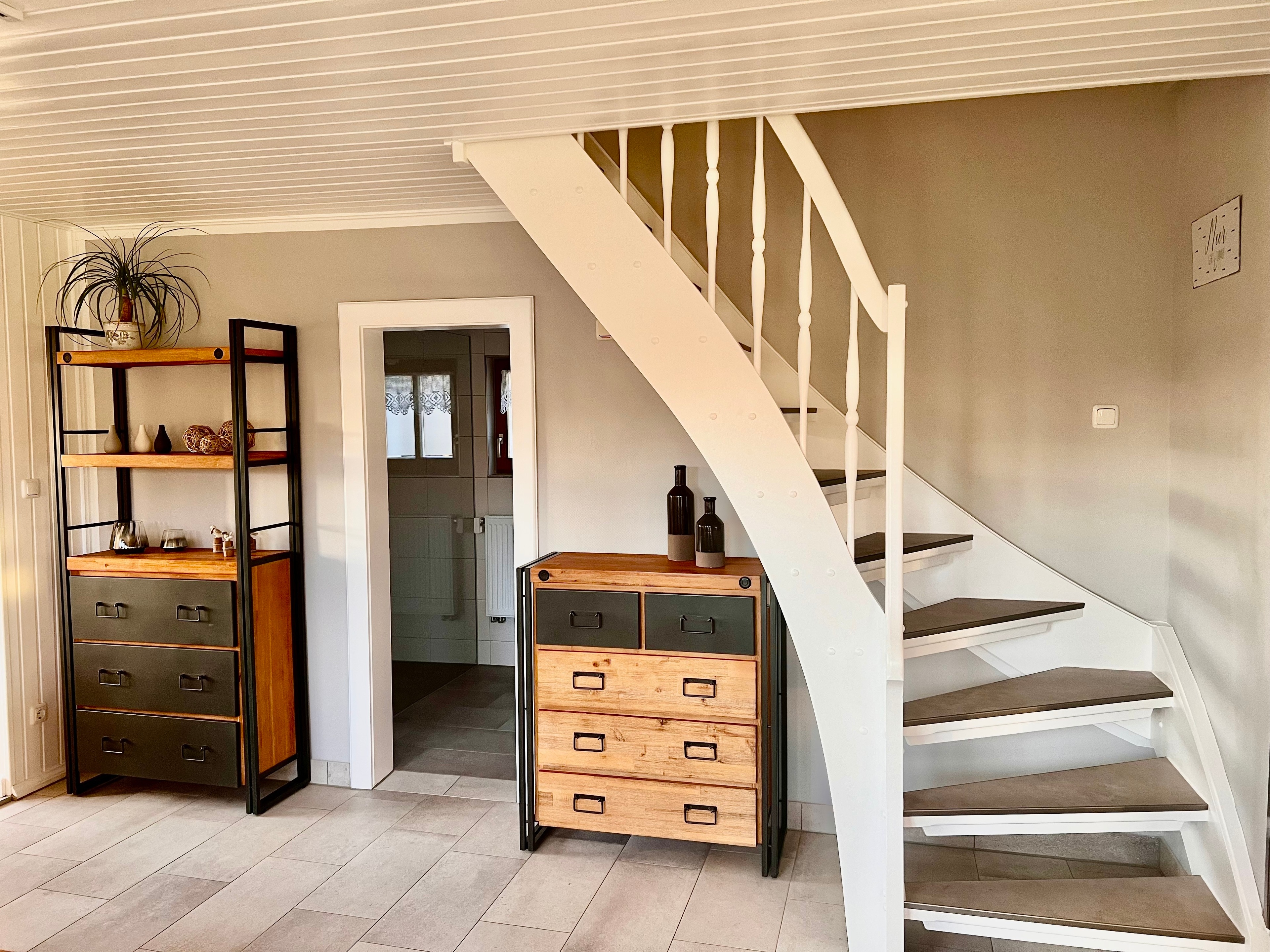 In der oberen Etage befinden sich die Schlafräume. Im unteren Bereich des Hauses befinden sich die Einbauküche mit Geschirrspüler, das Bad mit Dusche, WC und Waschmaschine (über Münzautomat), das Wohnzimmer mit Sat-TV und DVD-Player sowie das Esszimmer.