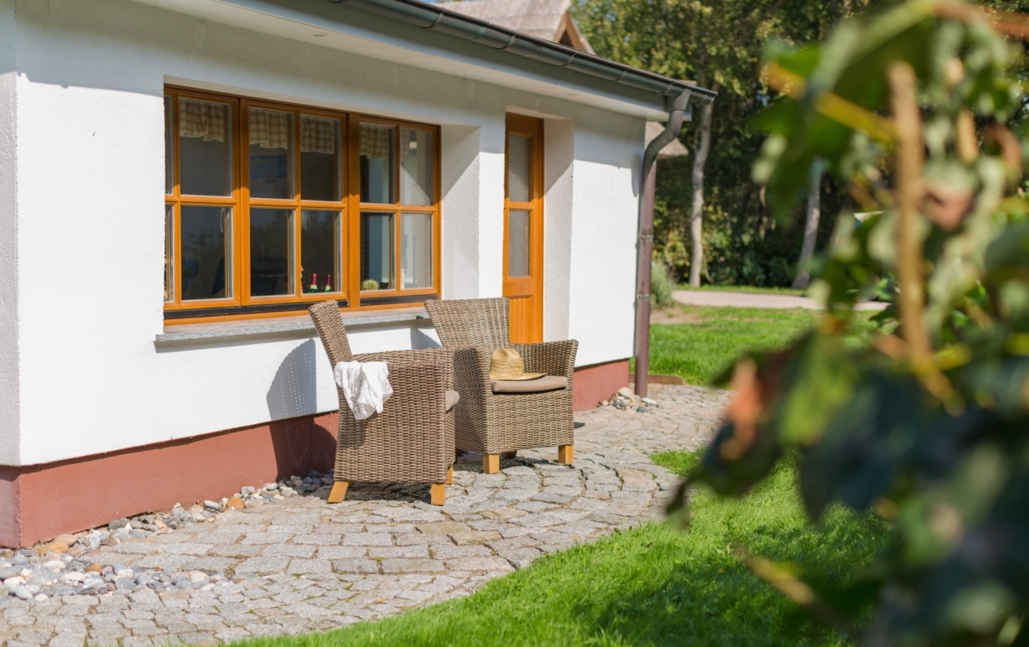 Zum Haus gehört eine Rasenfläche mit Gartenmöbeln sowie 1 kostenloser Pkw-Stellplatz auf dem Grundstück.