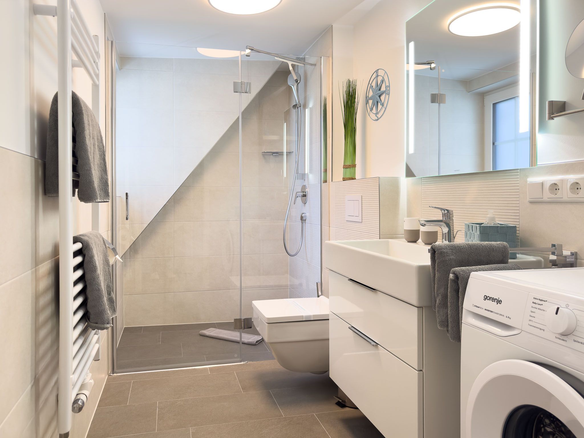 • Modernes Badezimmer mit ebenerdiger Dusche und Fußbodenheizung