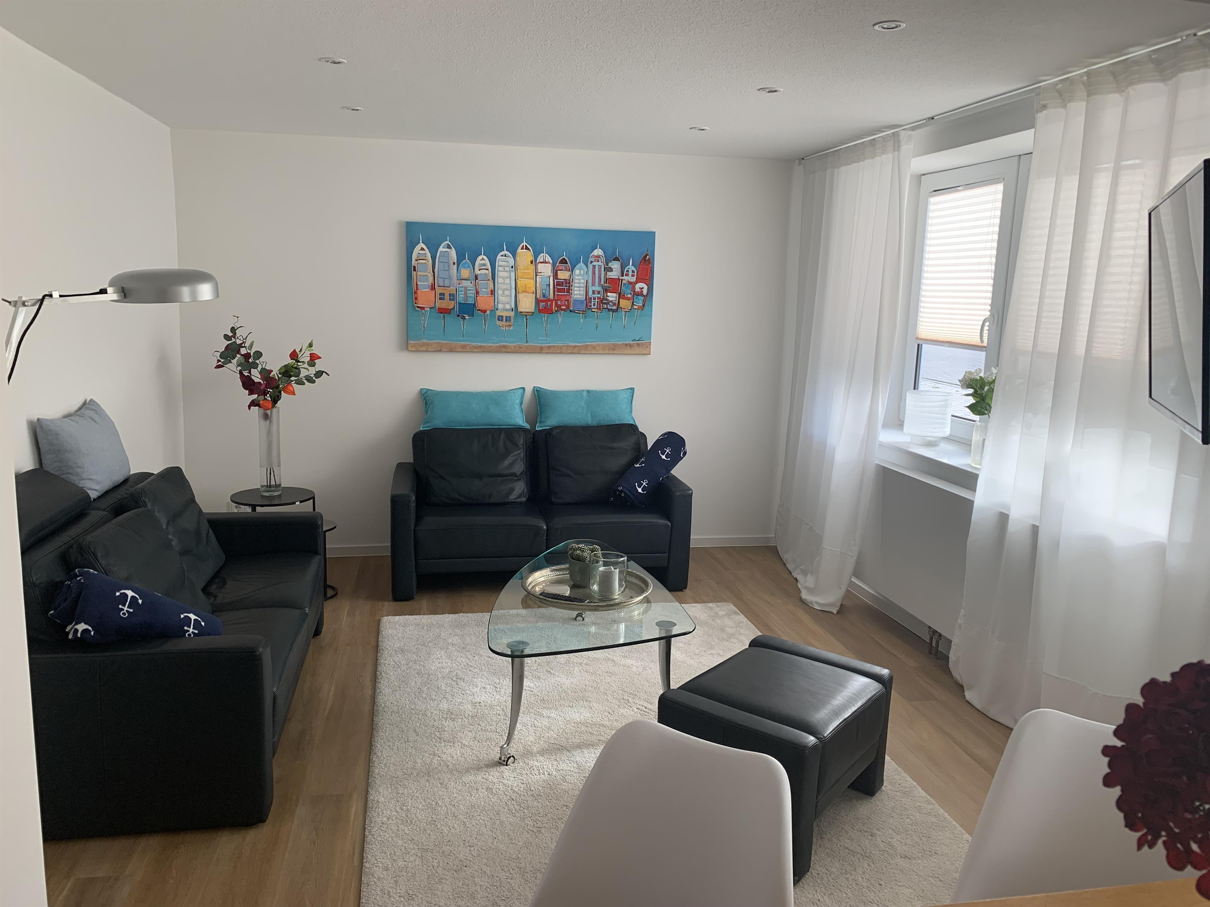 Huus Muckelig (ca. 90m²) bietet zwei Schlafzimmer (Betten jeweils 160x200cm) im Obergeschoss und zwei moderne Bäder mit Dusche, jeweils eines im Erd- und Obergeschoss. Eine voll ausgestattete, moderne Einbauküche, Esszimmer und Wohnzimmer komplettieren die Räumlichkeiten. Im Wohnzimmer laden gemütliche Sofas zum Verweilen ein, ein modernes TV-Gerät mit Satelliten-Empfang und kostenloses WLAN stehen den Gästen zur Verfügung. Für unsere kleinsten Gäste stehen ein Reisebettchen mit Bettwäsche und ein Kinderstuhl zur Verfügung.