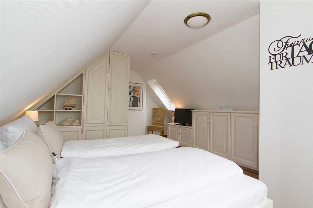 Die Unterkunft verteilt sich über 1.OG und DG . Die stilvolle, sehr helle Einrichtung überzeugt voll und ganz. Vom Westbalkon ist ein herrlicher Wattblick möglich. Einen Internetzugang per W-Lan und eine Flatrate für das deutsche Festnetz bieten wir Ihnen in dieser Wohnung an. Auch eine Nespresso-Kaffeemaschine finden Sie in dieser Unterkunft. Hier erleben Sie traumhafte Ferien, die keine Wünsche offen lassen.