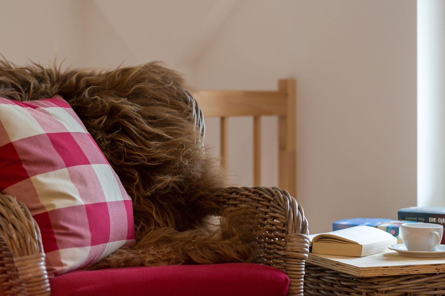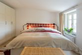 Die Rose bietet als 2-Zimmer-Maisonette über zwei Stockwerke auch Platz für bis zu 4 Personen. Im Erdgeschoss finden Sie die wohnliche Diele und eine große Wohnküche. Das innenliegende Duschbad befindet sich ebenfalls im Erdgeschoss. Über die große Holztreppe gelangen Sie in den sehr gemütlichen Wohnbereich mit den zum Teil schrägen Decken und den tiefgezogenen Fenstern mit Weitblick über die Gemüsefelder und Streuobstwiesen bis zum Gutshaus. Das große Sofa kann mit wenigen Griffen zu einem Doppelbett umfunktioniert werden. In das liebevoll gestaltete Schlafzimmer gelangen Sie direkt vom Wohnzimmer aus.