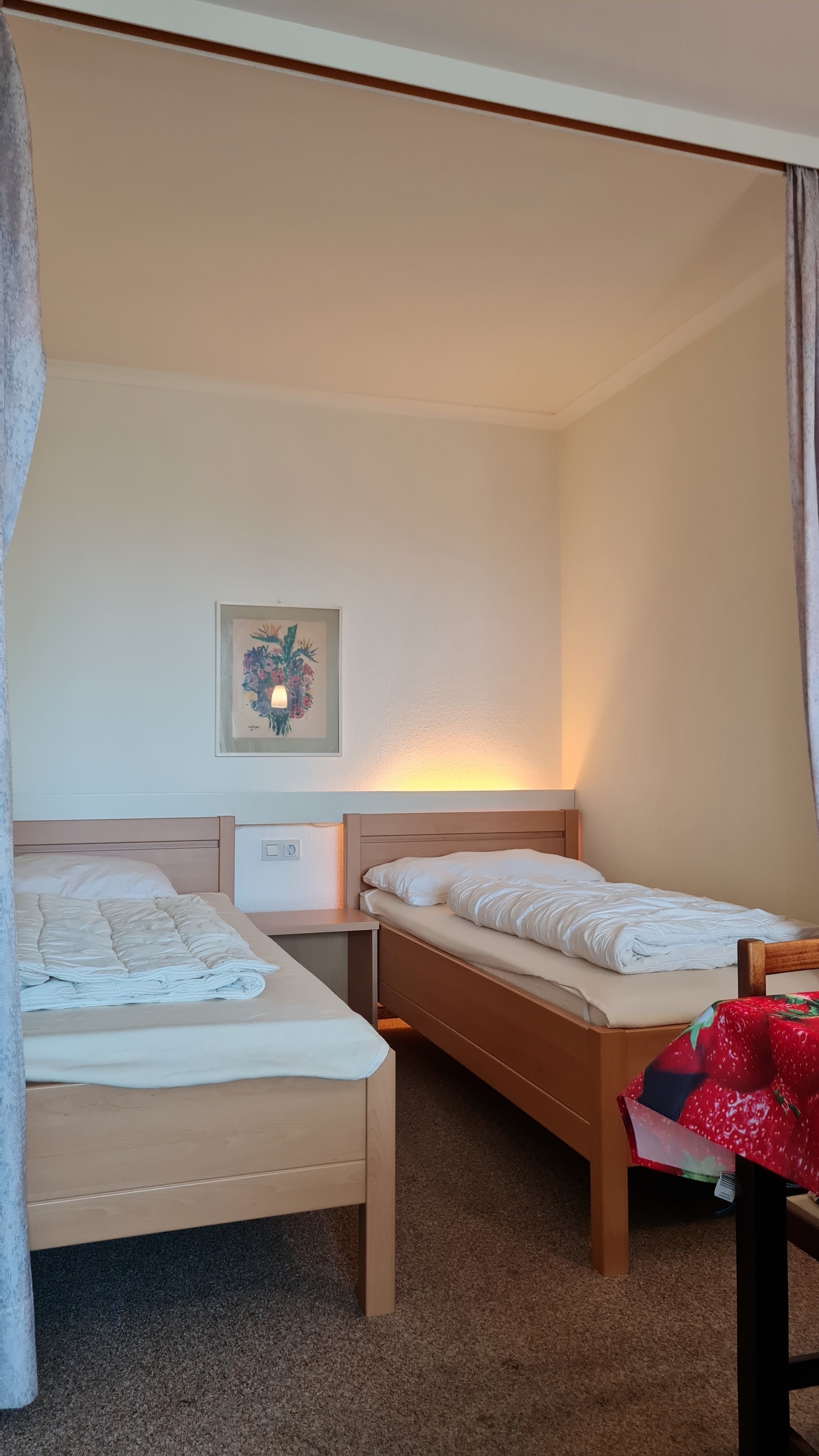 Im Schlafzimmer finden ebenfalls 2 Personen auf den Einzelbetten Platz.