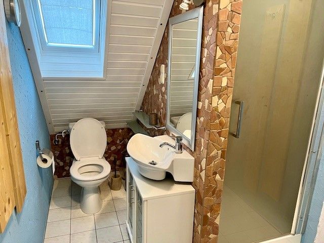 Die Schlafzimmer befinden sich im Obergeschoss: Schlafzimmer 1 mit Doppelbett (160 cm breit) und Schlafzimmer 2 mit zwei Einzelbetten (140 cm und 100 cm breit). Die Küche ist mit Mikrowelle, Kaffeemaschine, Wasserkocher, Toaster, Spülmaschine und viel Geschirr sehr gut ausgestattet. Eine Waschmaschine ist ebenfalls vorhanden wie auch WLAN-Internetzugang, Kabelanschluss. Das Wohnzimmer ist mit einem Kamin ausgestattet, dort finden Sie auch viele Bücher und Brettspiele, die den Urlaubsabend in der Familie perfekt machen.
