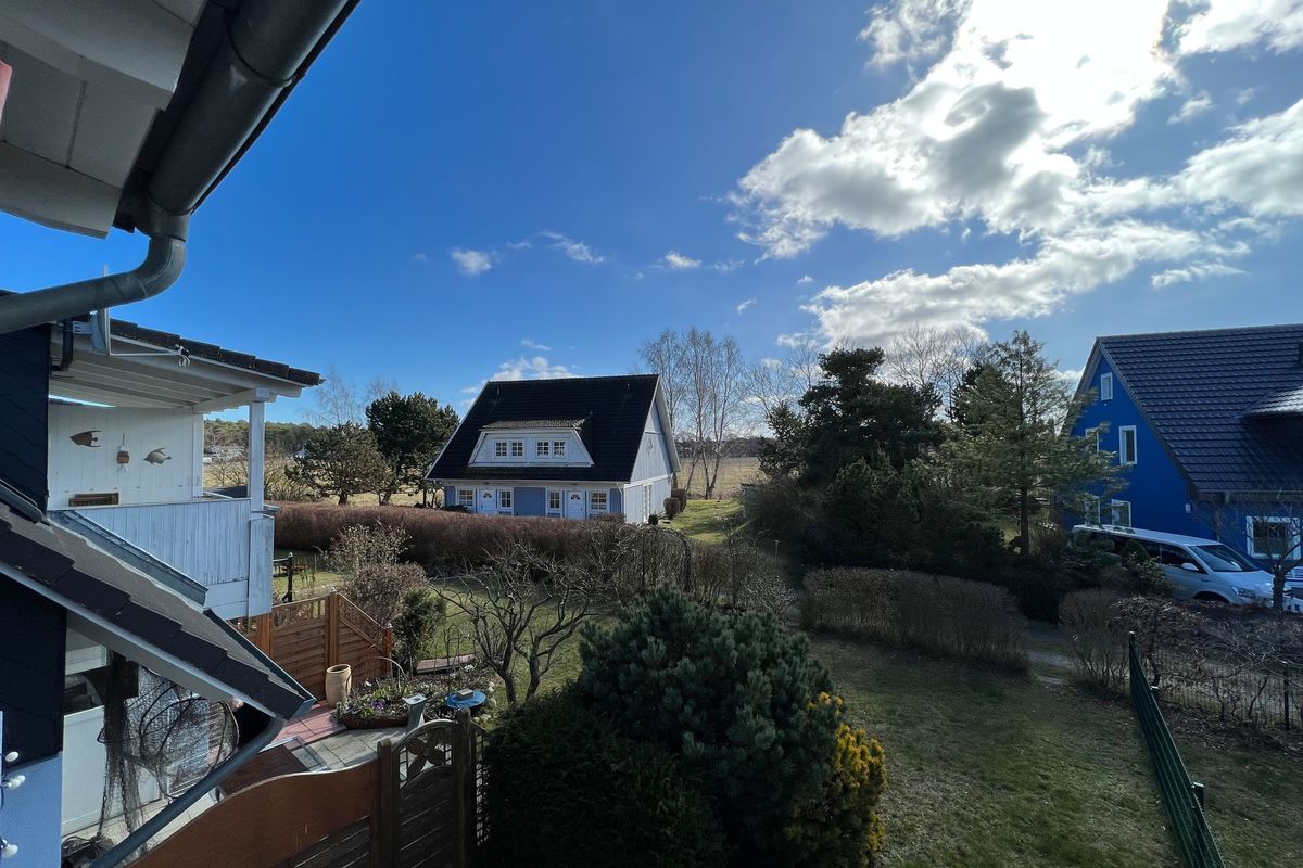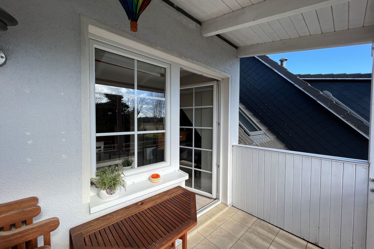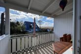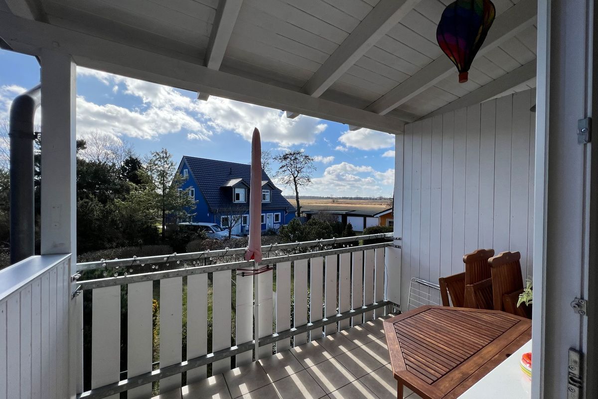 Vom Wohnnereich aus gelangen Sie auf den überdachten Balkon in Südlage, auf dem Sie den Urlaubstag in Ruhe und mit Blick in die Natur genießen können.