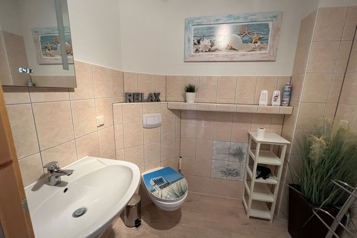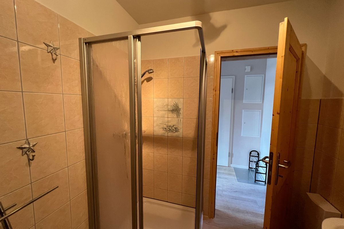 Das Badezimmer mit Dusche steht im unteren Teil der Wohnung für Sie bereit..