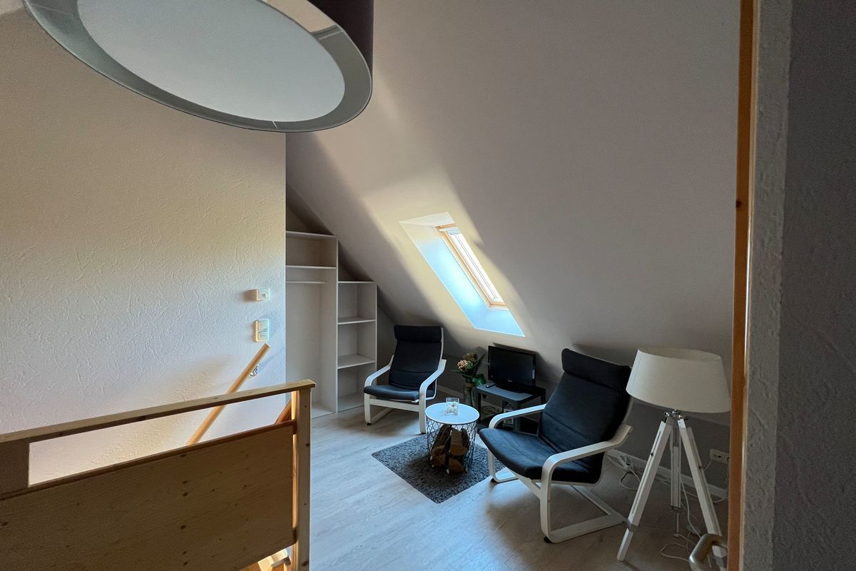 • oberer Teil der Maisonettewohnung mit Sitzecke und Doppelbett