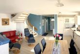 Freuen Sie sich auf auf eine hochwertige moderne familienfreundliche Innenausstattung, die mit Liebe zum Detail im maritimen Stil für unsere Gäste ausgewählt wurde. Auf 97 m² Wohnfläche, ausgestattet mit einer modernen Fußbodenheizung, finnischer Sauna und Wellnessdusche, sowie einem romantischen Kachelkaminofen, bleiben keine Wünsche offen, um einem gemütlichen Ganzjahresurlaub an der mecklenburgischen Ostsee zu verbringen.