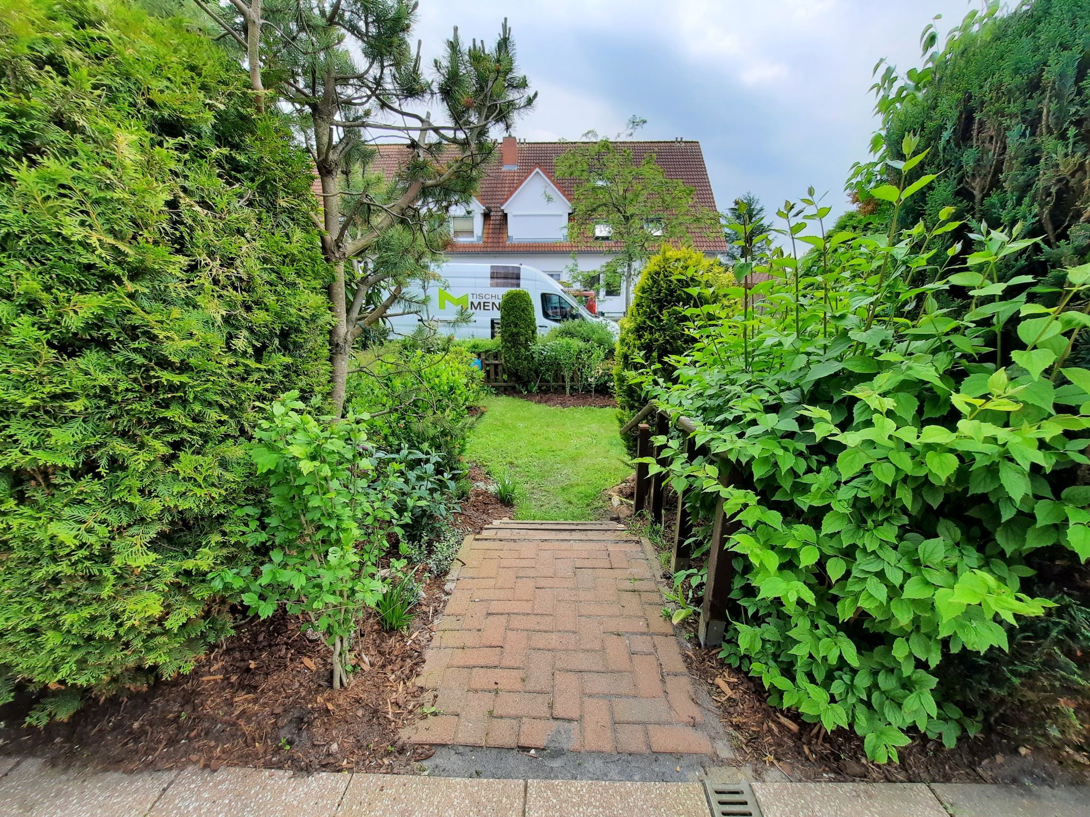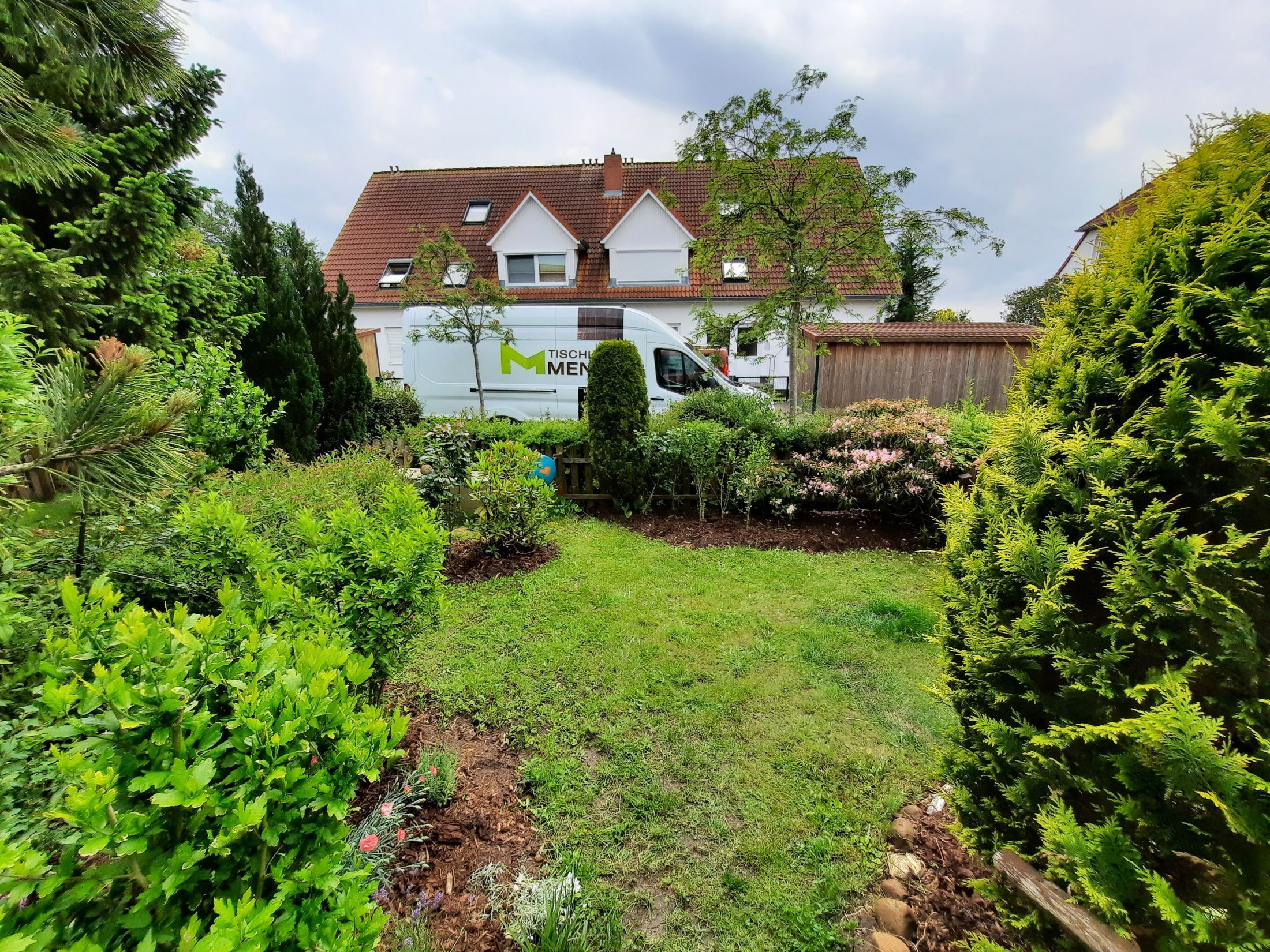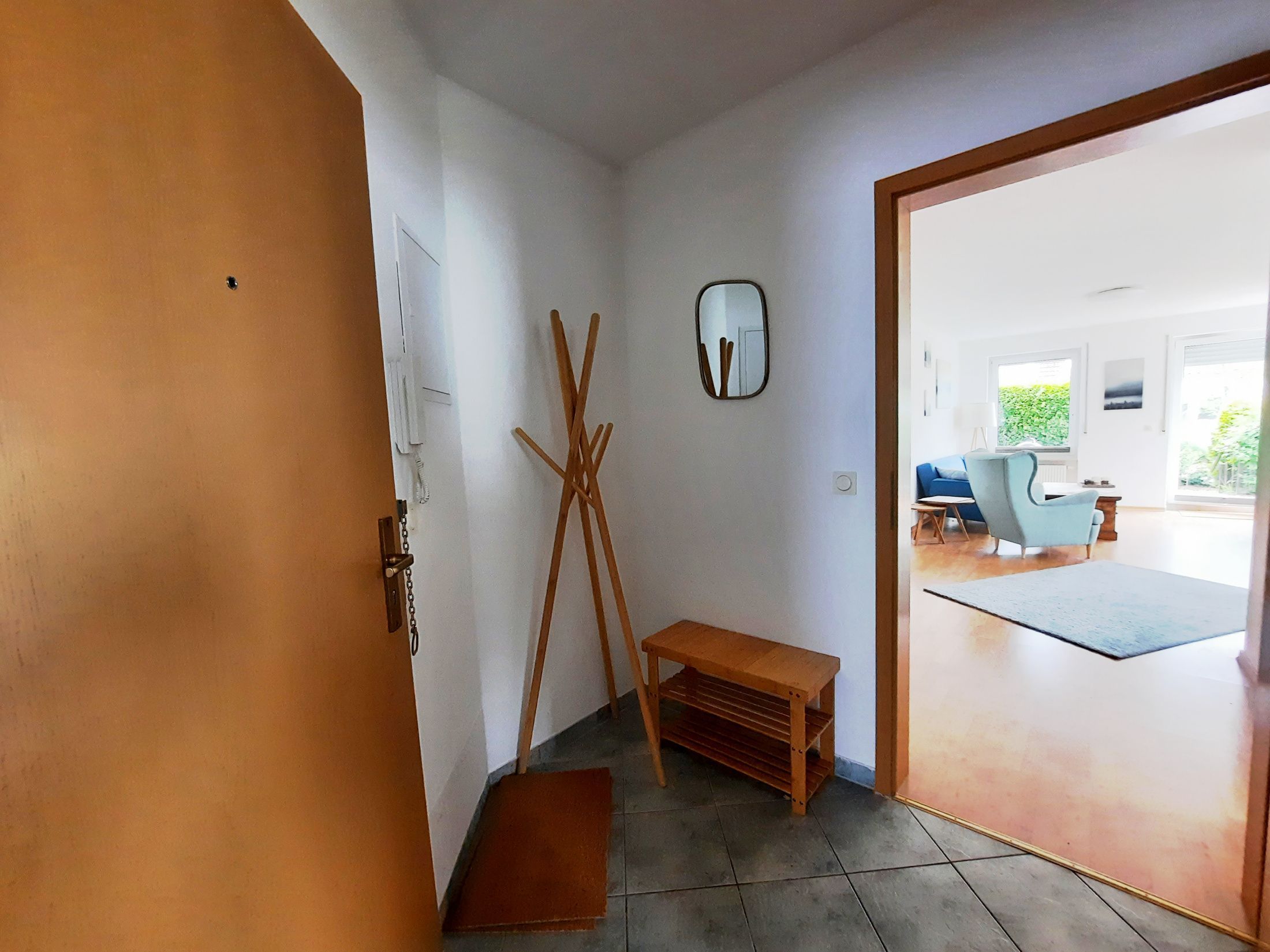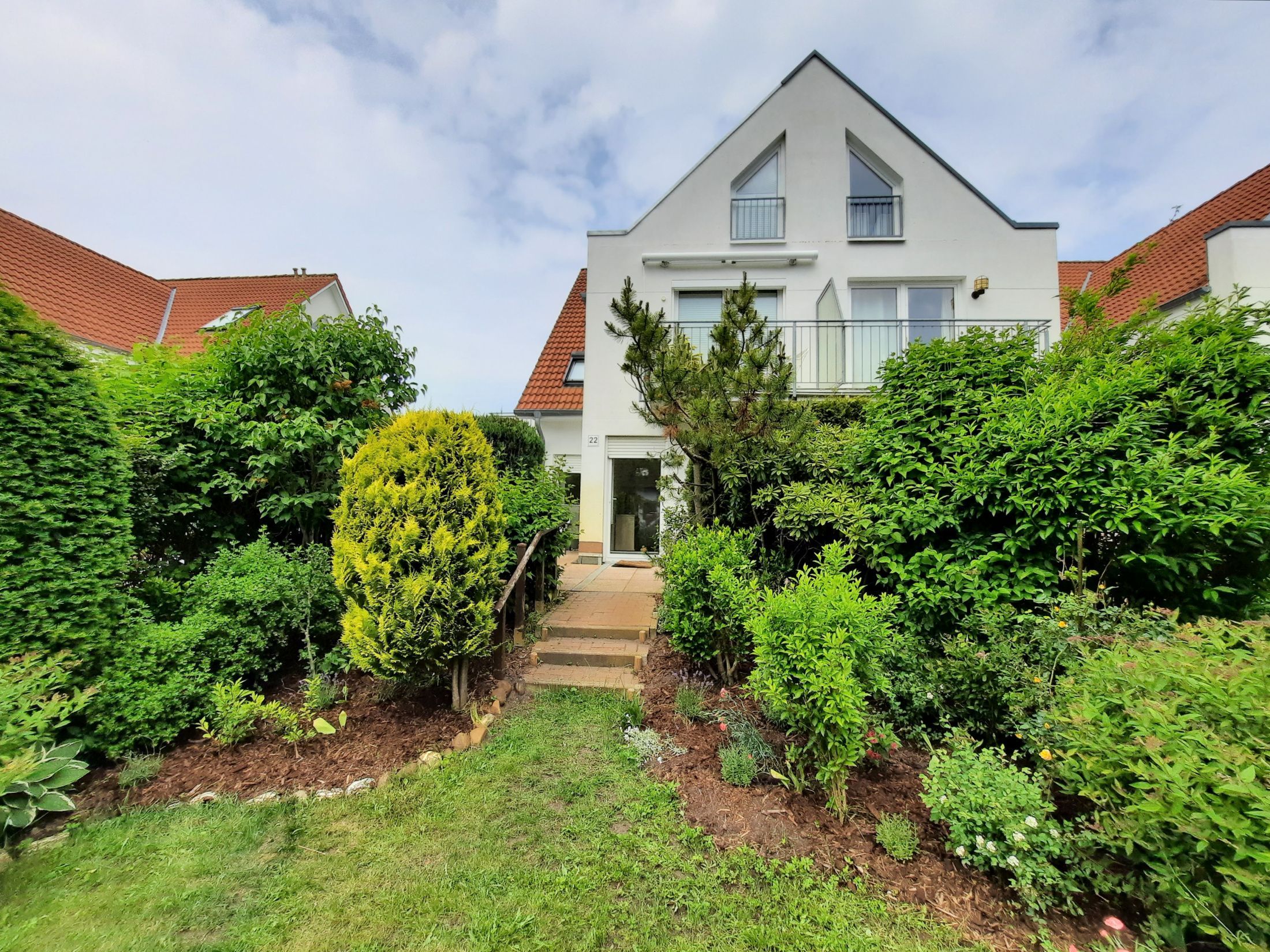 Hinter dem Haus befindet sich eine schöne Terasse mit kleinem Gartenanteil.