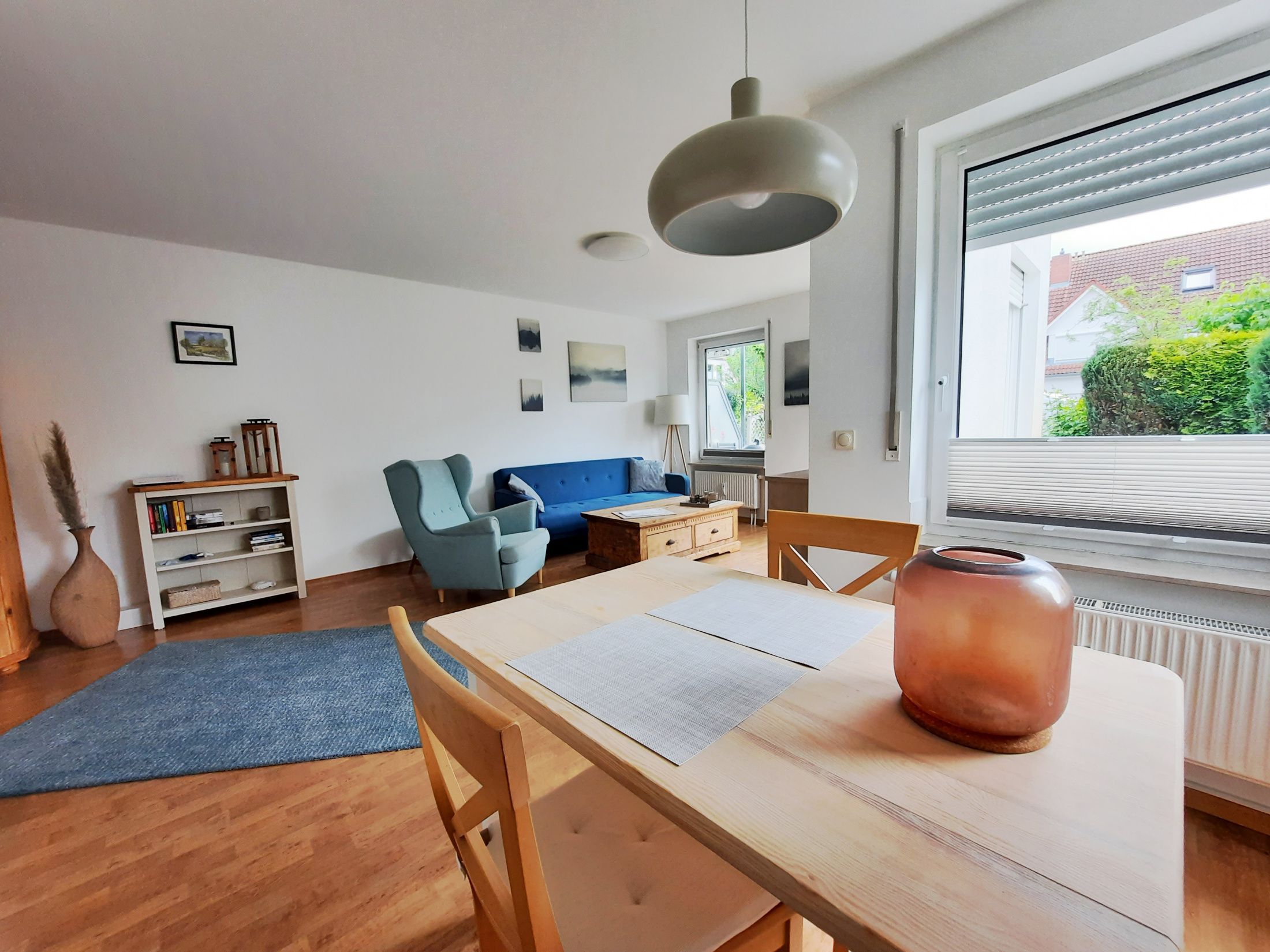In dieser gemütlichen 2-Zimmer-Wohnung können Sie endlich vom Alltag abschalten, während Sie im Wohnzimmer auf der bequemen Couch sitzen und Ihren Lieblingsfilm auf dem Flachbildfernseher schauen. Zudem ist das Wohnzimmer mit einer Essecke für 2 Personen ausgestattet.