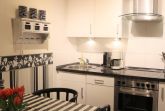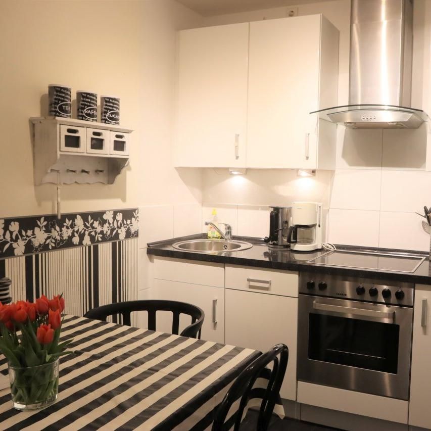 Sie betreten die Wohnung und erleben als erstes eine geschmackvoll gestaltete Küche mit integrierter Essecke für Vier.