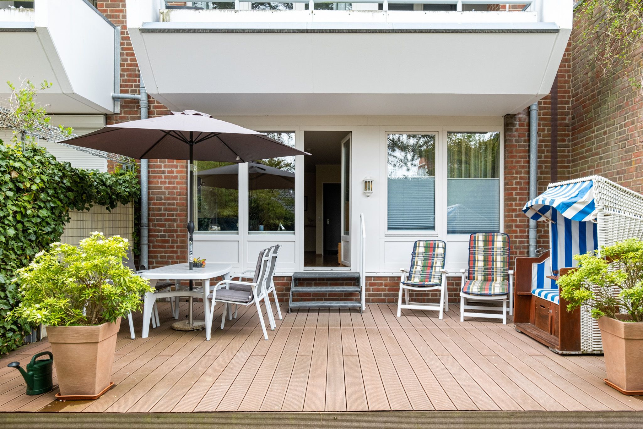 Freuen Sie sich auf eine große, nach Osten ausgerichtete Terrasse mit Strandkorb.