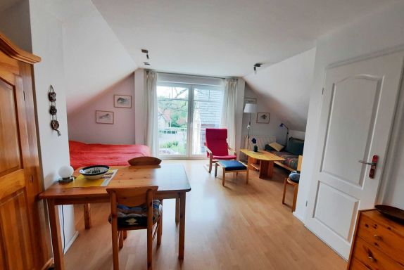 Das Appartement ist in einen Wohn-, Schlaf- und Essbreich (mit Backofen und Kühlschrank) aufgeteilt. Das Appartement verfügt über ein Bad mit Fenster, einen französischen Balkon, einen PKW-Stellplatz und einen abschliessbaren Fahrradschuppen.