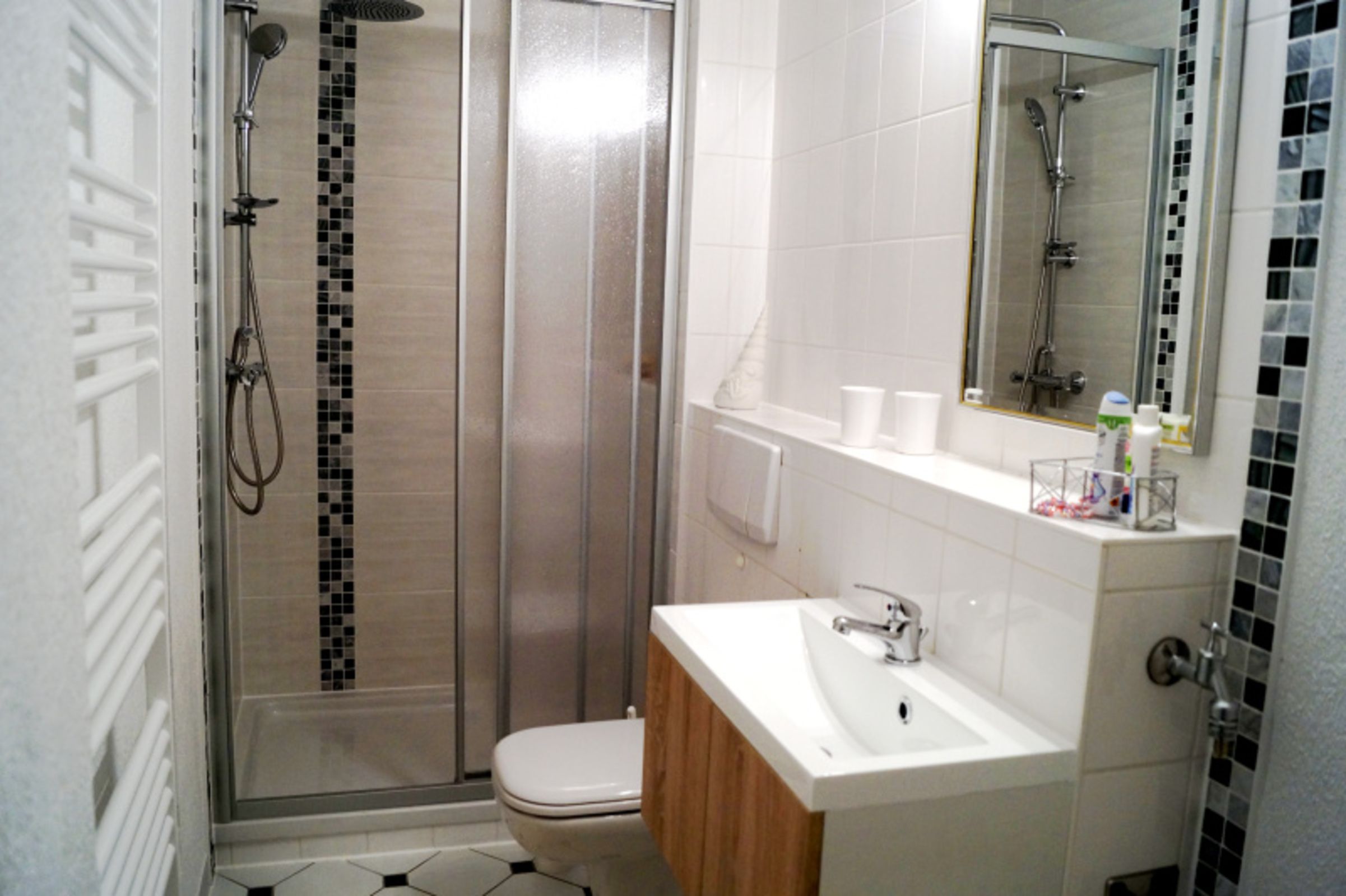 Die 2 Zimmer Ferienwohnung befindet sich im Erdgeschoss und verfügt über ein Wohnzimmer mit einer Couch und einem Fernseher, eine Küche mit Backofen und Kühlschrank und ein Bad mit Dusche und WC. Zu der Ferienwohnung gehört außerdem ein PKW-Stellplatz.
