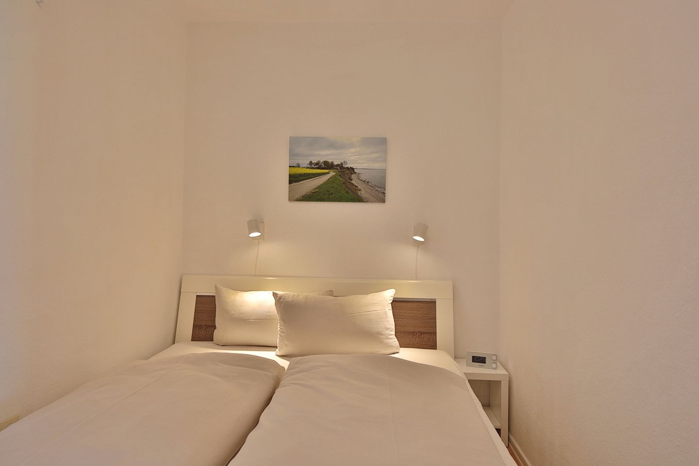 Das Schlafzimmer ohne Fenster ist mit einen Doppelbett mit einer Liegefläche von 1,60 x 2,00m (getrennte Matratzen) sowie einem Kleiderschrank ausgestattet.