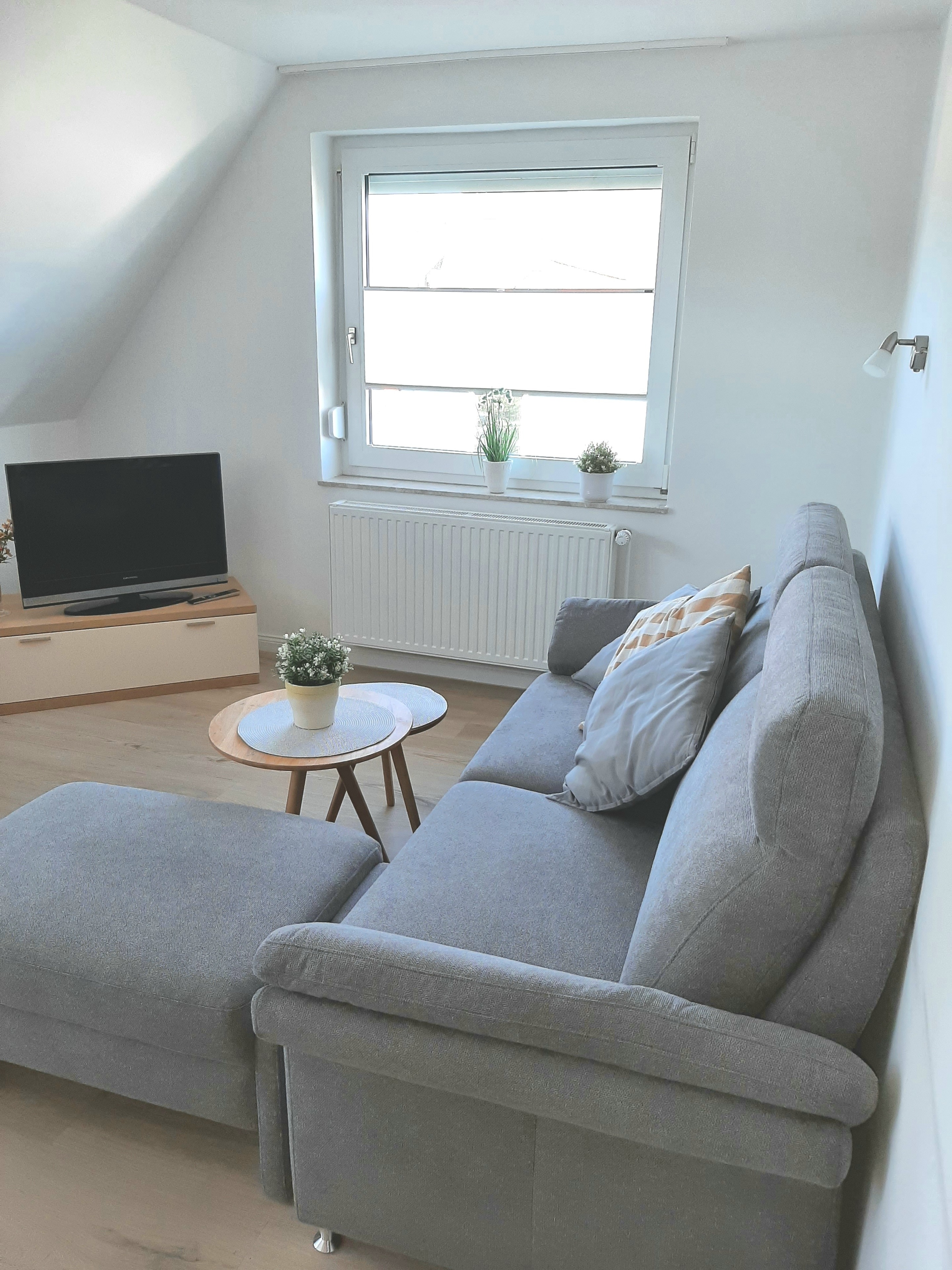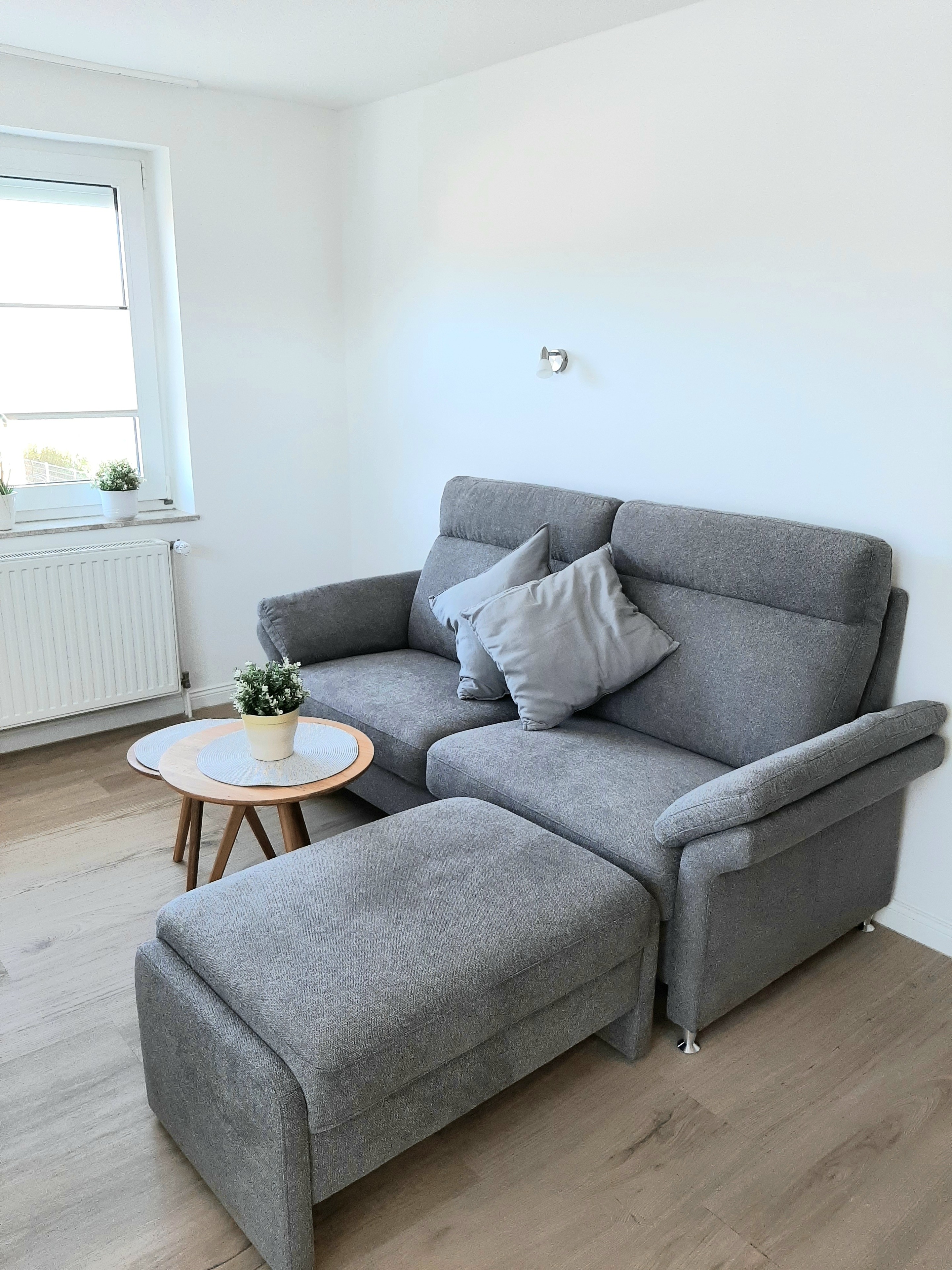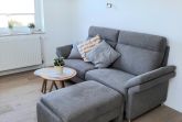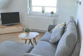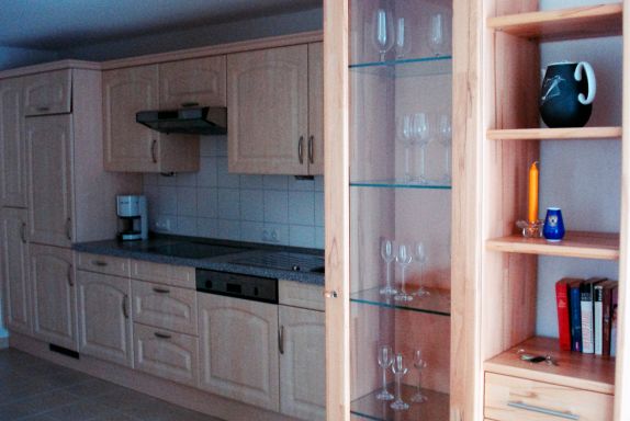 Moderne Ferienwohnung am Deich (100 m zum Hauptbadestrand), Schlafzimmer mit Doppelbett in Komforthöhe, Wohnzimmer mit Küchenzeile, Flachbildschirm-TV, Coach und Seel, Esstisch und Stühle. Küchenzeile mit Cerankochfeld, Geschirrspüler, Kühschrank mit Gefrierfach, Mikrowelle, Toaster, Kaffeemaschine u.v.m. Duschbad mit großem Spiegelschrank.