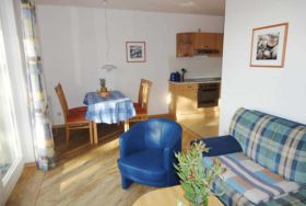 Die 2 Zimmer Ferienwohnung verfügt über ein Wohnzimmer mit einer Couch und einem Fernseher, eine offene Küche mit einem Backofen, einem Geschirrspüler und einem Kühlschrank, ein Schlafzimmer mit einem Doppelbett und einem Kleiderschrank sowie über ein Bad mit Dusche / WC. Zu der Ferienwohnung gehören außerdem ein PKW-Stellplatz und ein Balkon.