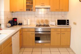Ferienhaus Meer, 4-Zimmer-Doppelhaushälfte 112 m2 auf 2 Stockwerken. Gemütlich eingerichtet: Wohn-/Esszimmer mit Sat-TV. Ausgang zur Terrasse. Küche (Backofen, Geschirrspüler, 4 Glaskeramikplatten, Toaster, Wasserkocher, Mikrowelle, Tiefkühler, elektrische Kaffeemaschine). Sep. WC. Obergeschoss: 1 abgeschrägtes Zimmer mit 1 Doppelbett. 1 abgeschrägtes Zimmer mit 1 Betten und 1 Doppelbetten. 1 abgeschrägtes Zimmer mit 2 Betten. Bad/WC. Terrasse, Rasen. Terrassenmöbel, Liegestühle (2). Zur Verfügung: Waschmaschine, Kinderhochstuhl, Babybett. Internet (Wireless LAN, gratis). Parkplatz (überdacht, 1 Auto). Bitte beachten: Nichtraucher-Unterkunft.