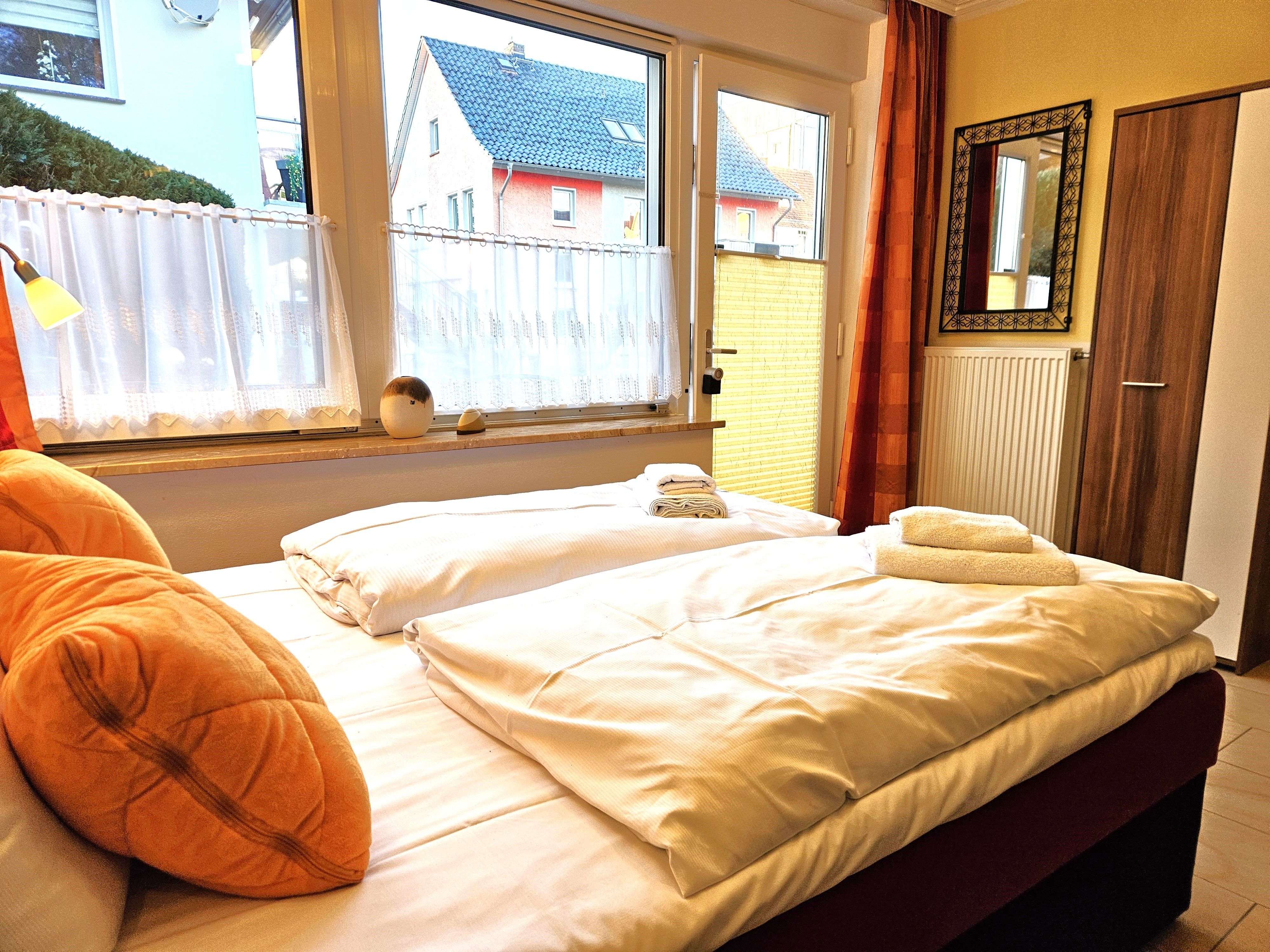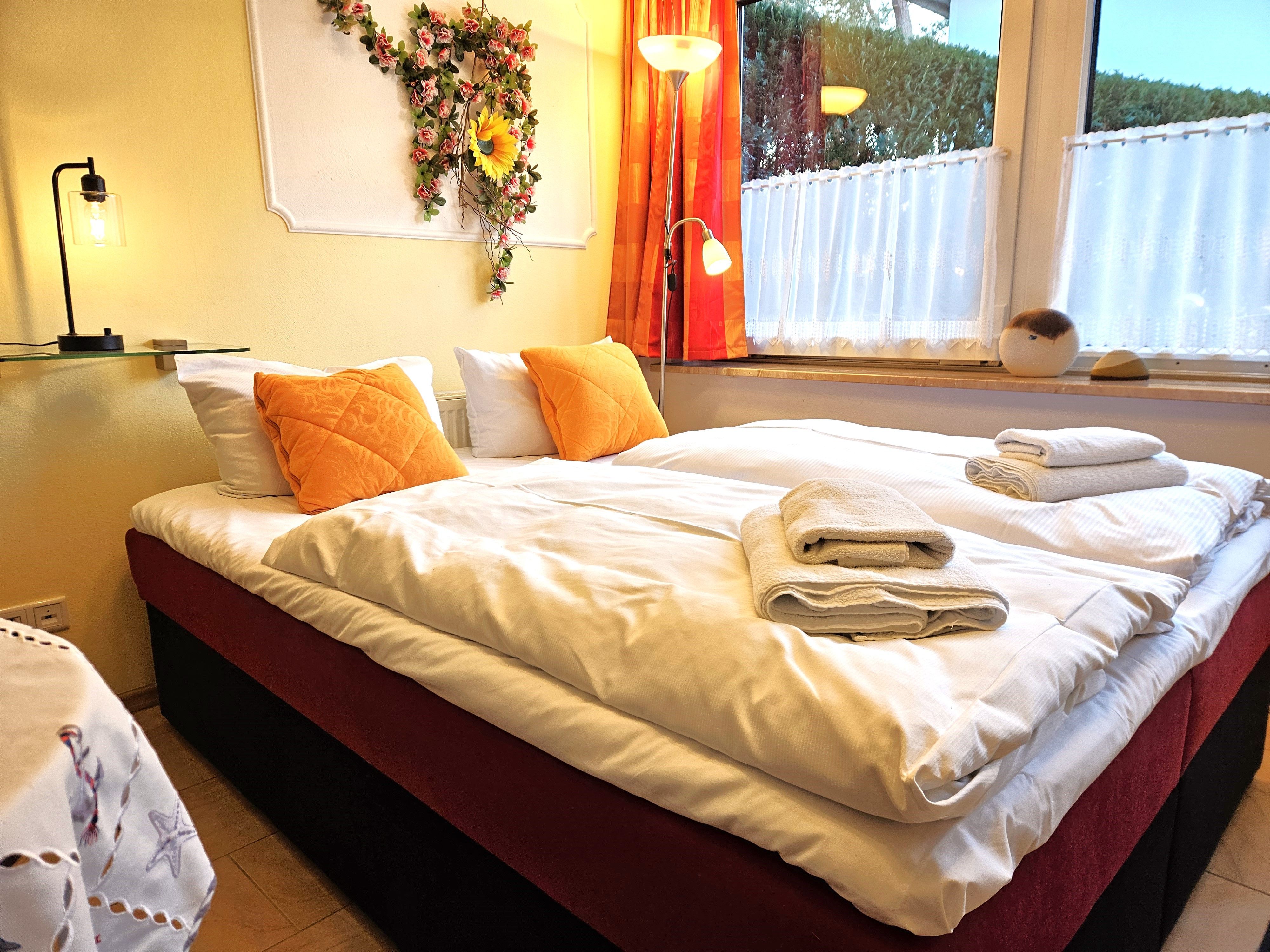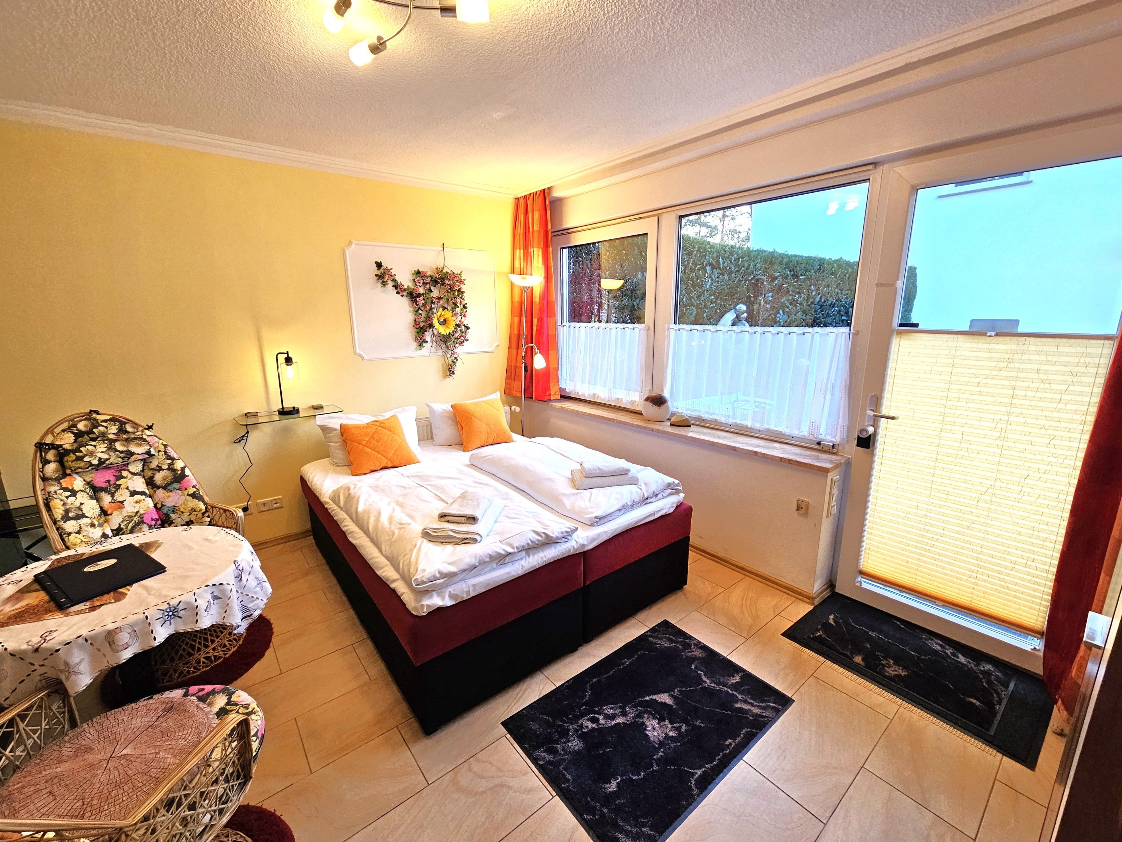 Die beiden 1-Raum-Ferienwohnungen im Bungalow sind mit einer Doppeltür verbunden und können auch als große Ferienwohnung kombiniert werden.