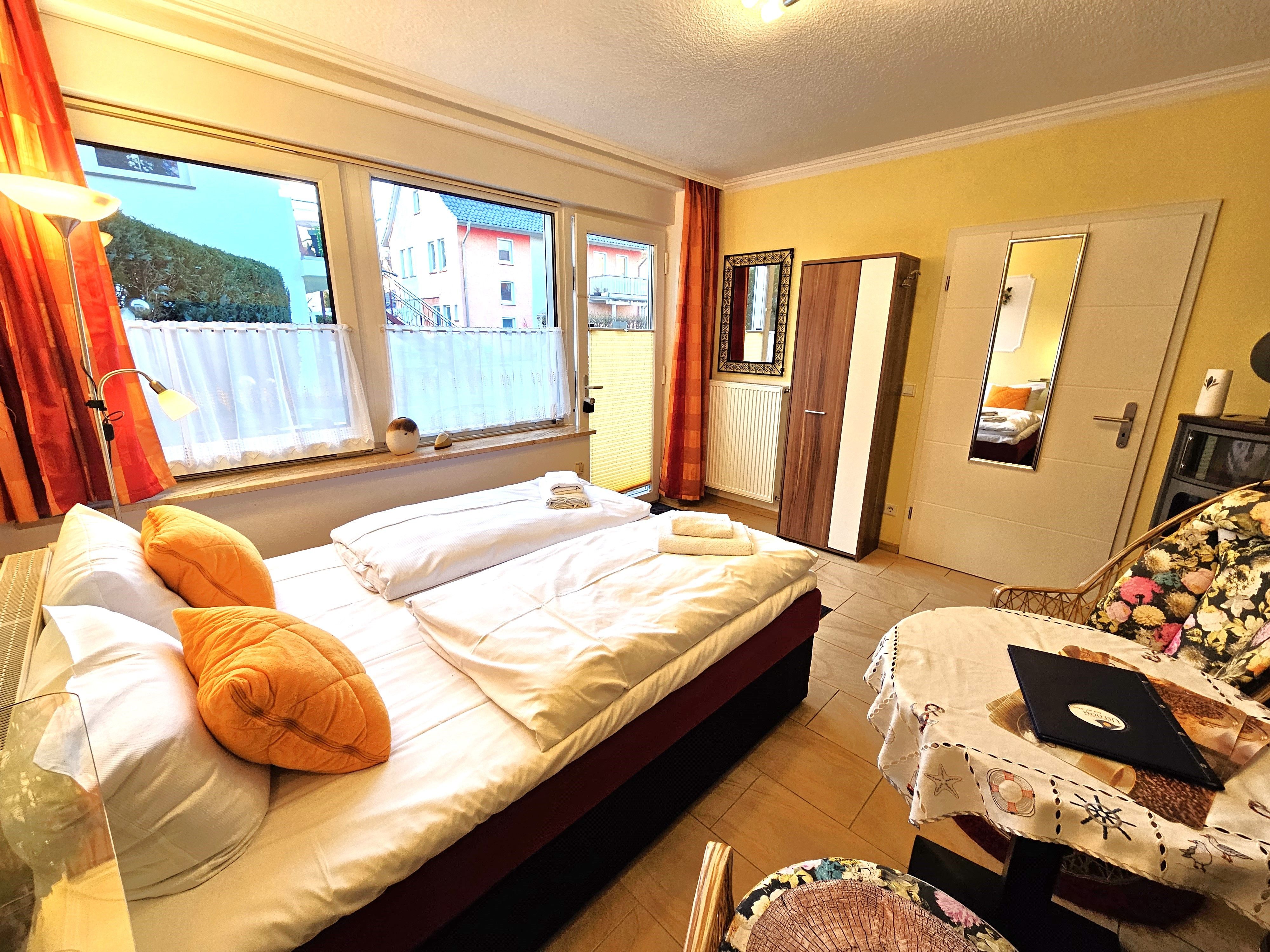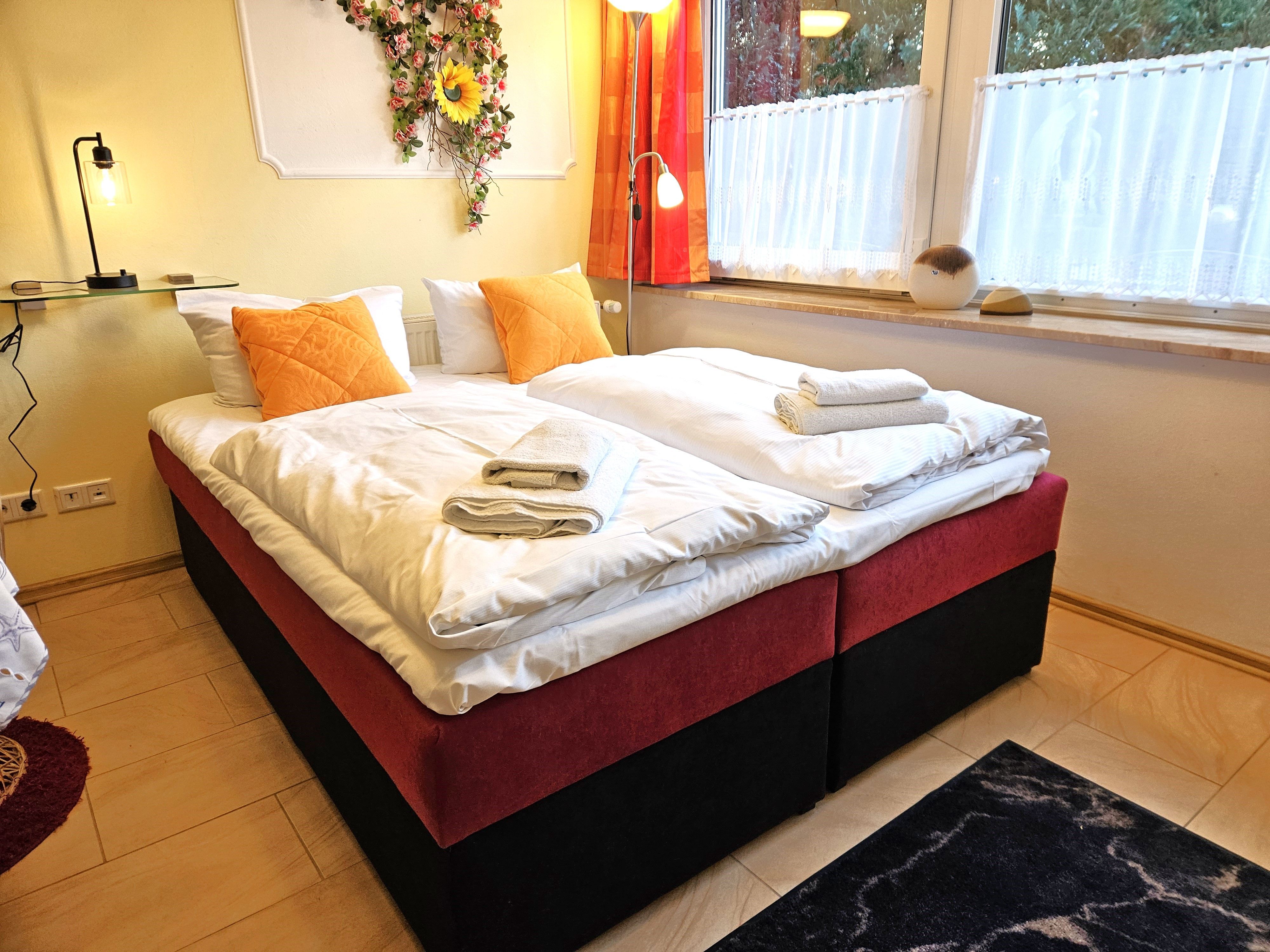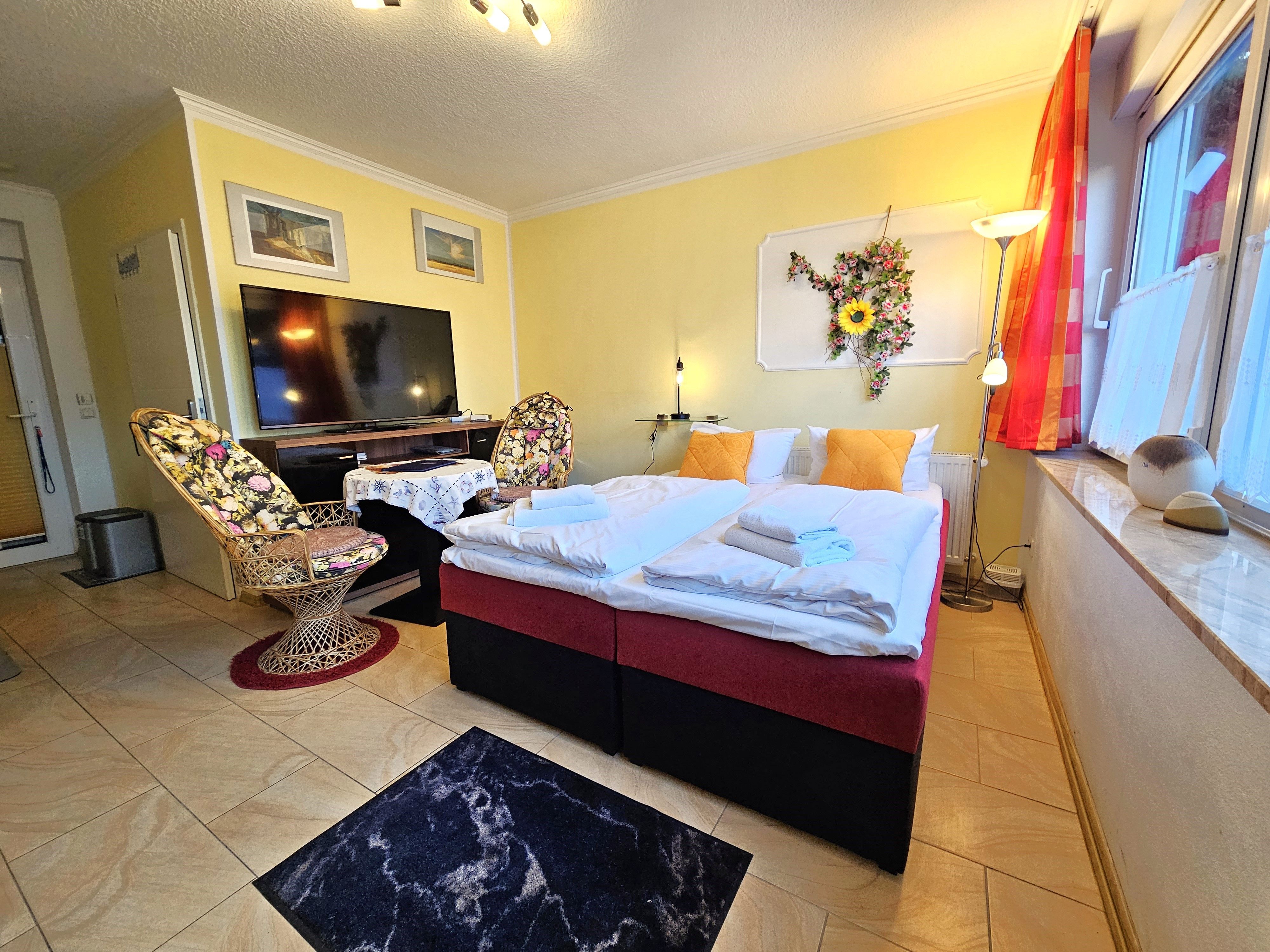 Die beiden 1-Raum-Ferienwohnungen im Bungalow sind mit einer Doppeltür verbunden und können auch als große Ferienwohnung kombiniert werden.
