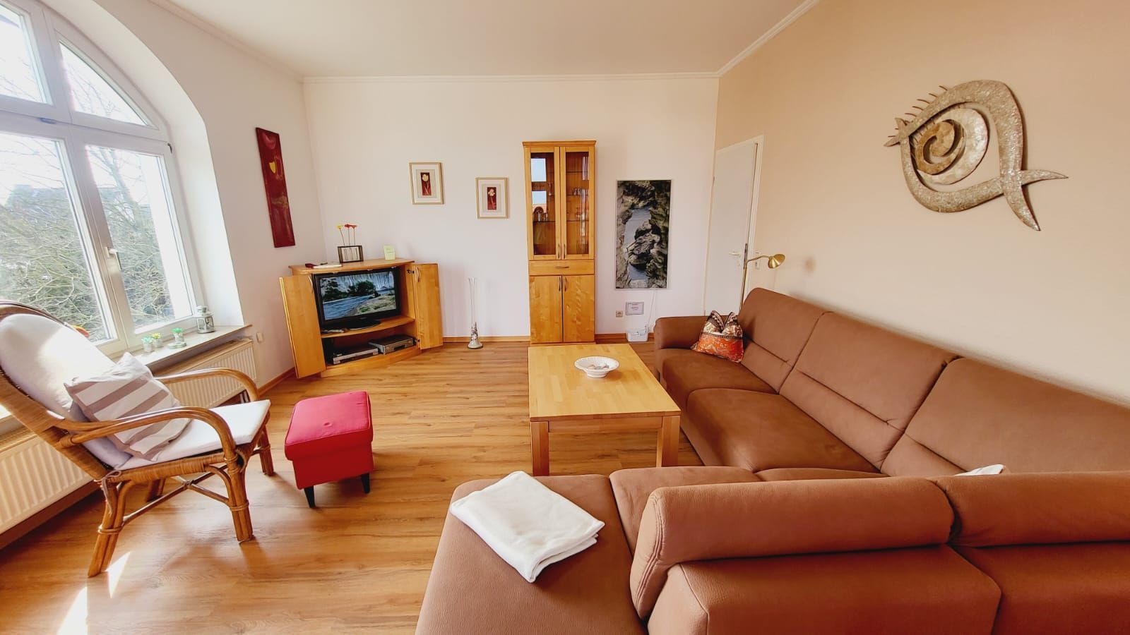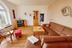 - Wohnbereich mit bequemen Ecksofa und Sessel, DVD, Radio/CD