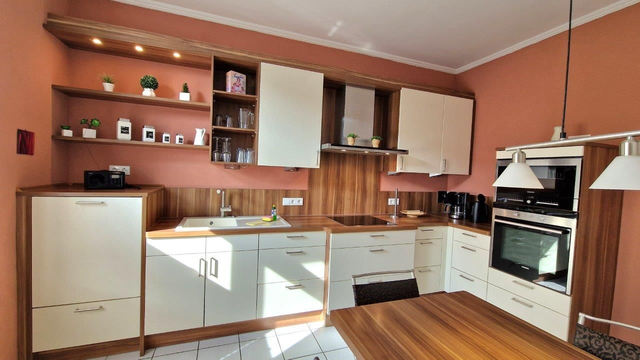 - separate Küche -Ceran-Kochfeld, Herd mit Backröhre, Mikrowelle, Kühlschrank,