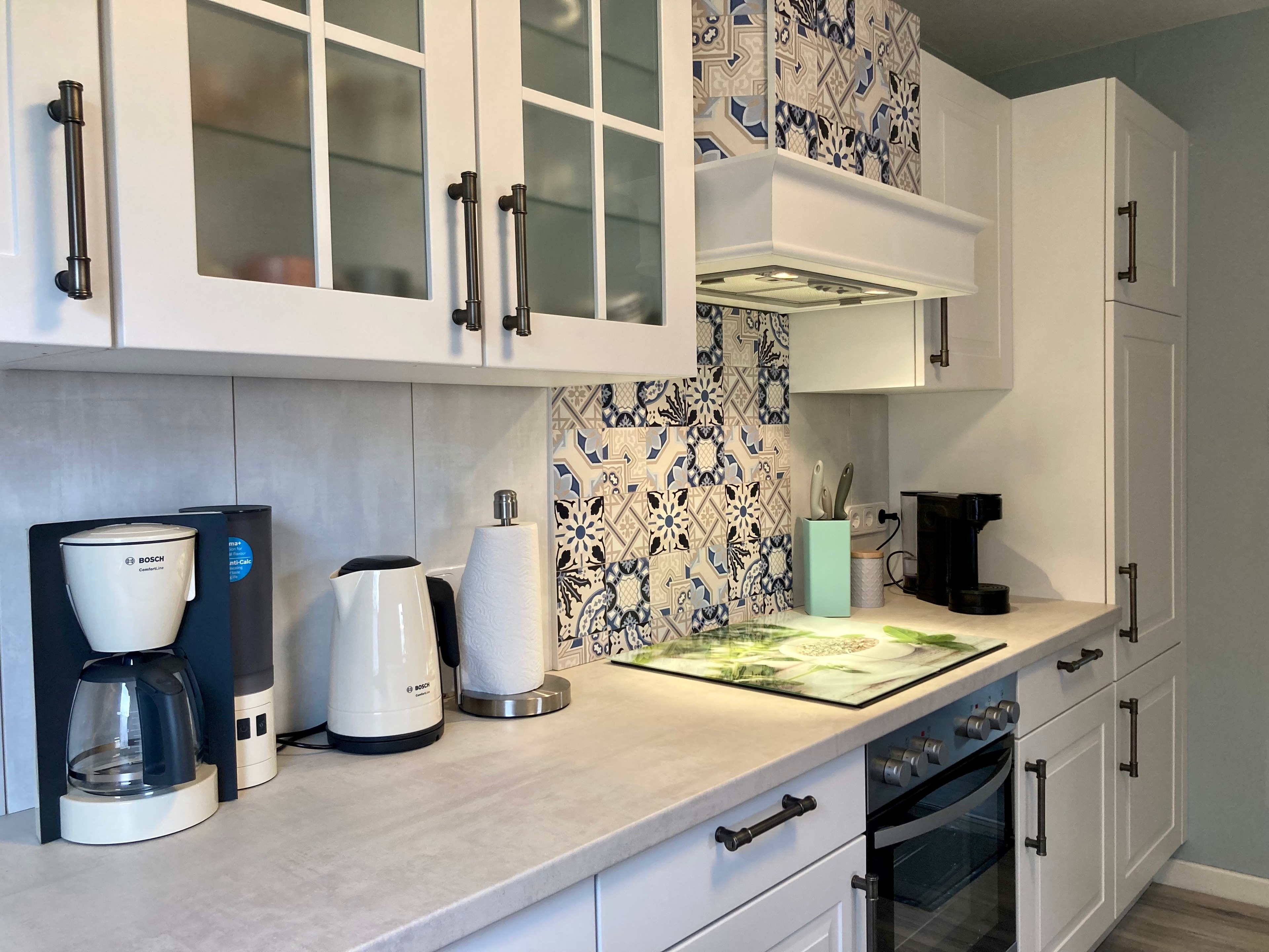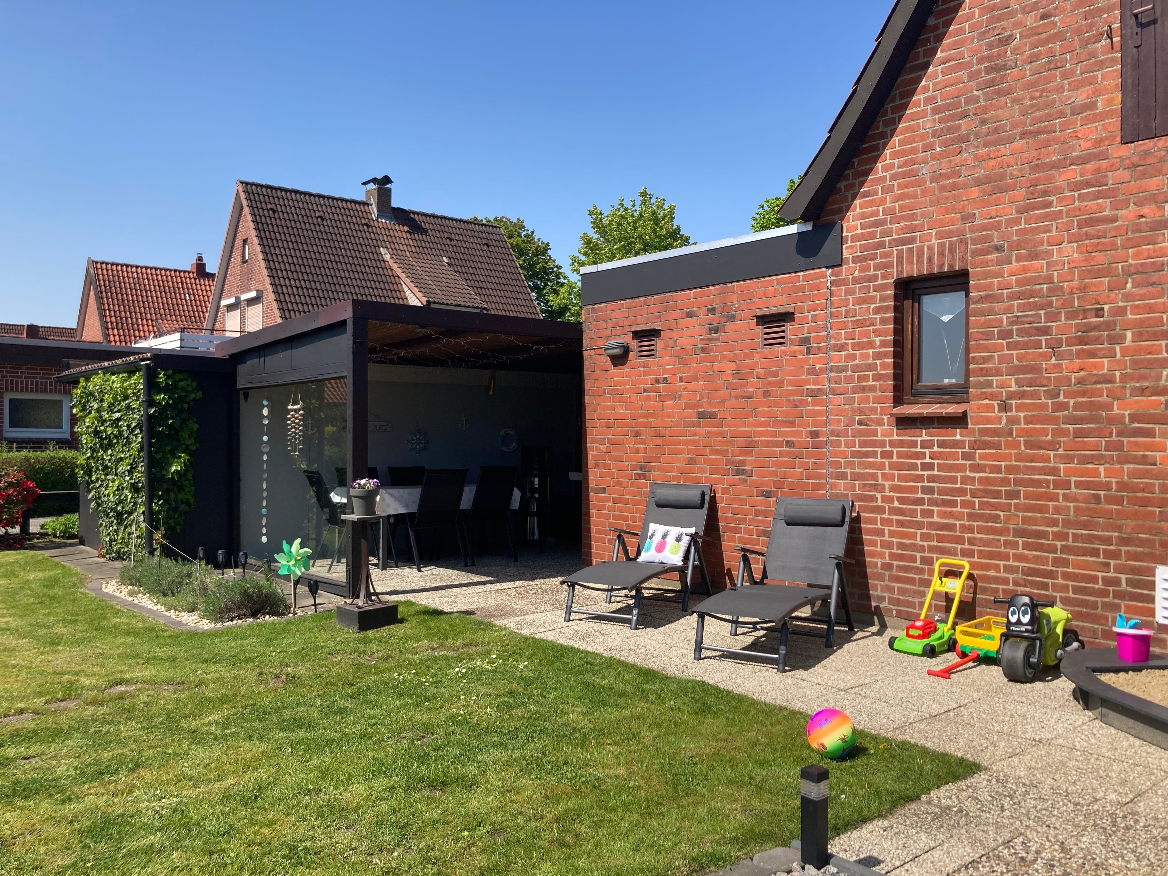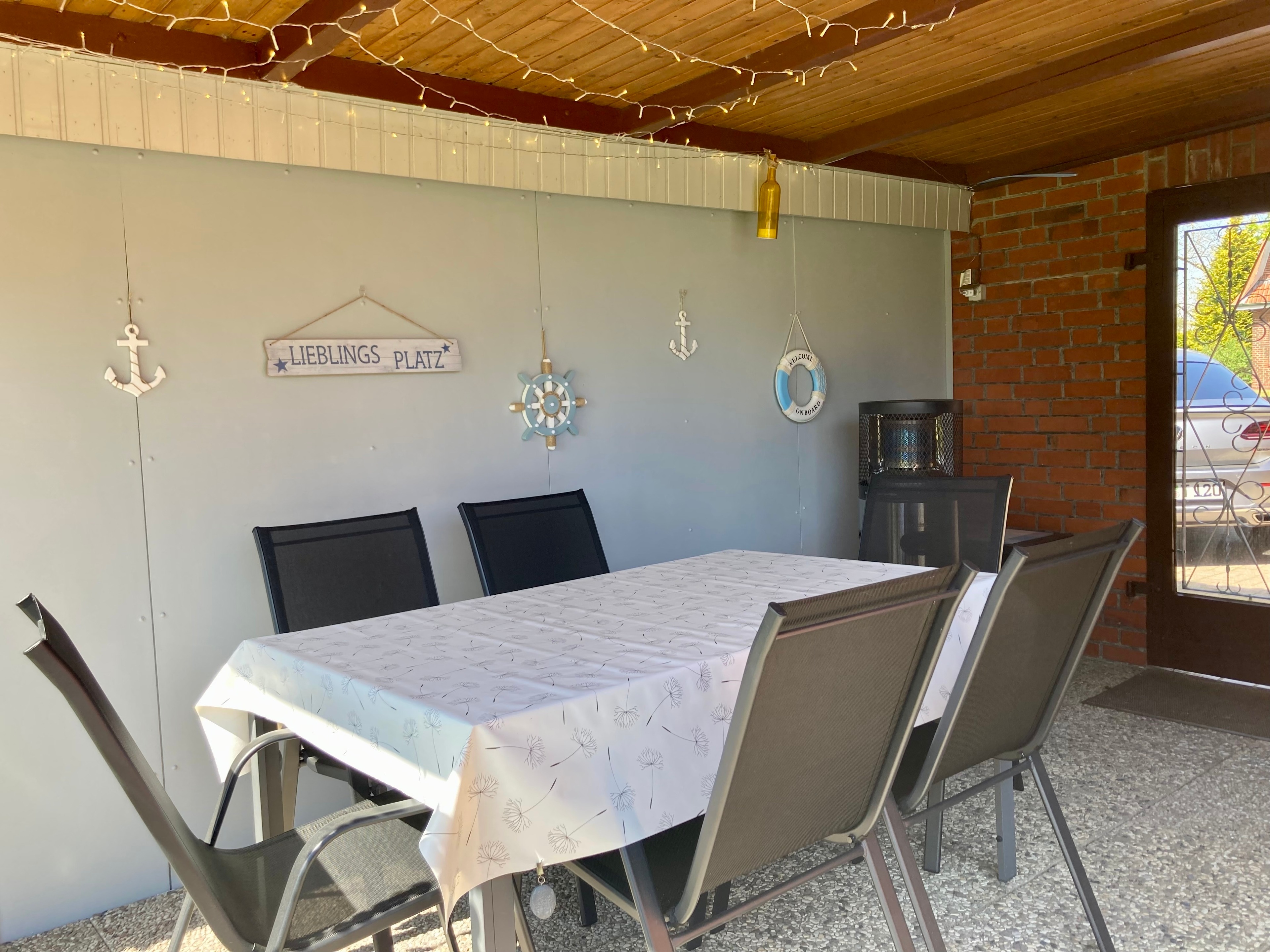 Das Ferienhaus steht auf einem ca. 600m² großen und gepflegten Grundstück. Zur Hausrückseite Garten mit Randbepflanzung, Rasenspielfläche sowie einer offenen und einer überdachten Terrasse mit Mobiliar, Gasgrill, 6 Sonnenliegen und einer Auswahl an Kinderspielgeräten (Schaukel, Rutsche, Bobbycar, Dreirad, Boccia, etc). Das Haus wurde 2023/2024 komplett renoviert und neu möbliert. Freundlich-helle, geschmackvolle und gemütliche Einrichtung mit liebevollen Details in Raum- und Farbgestaltung. Überdurchschnittliche Ausstattung. 3x Sat-TV, Radio und Internetanschluß (WLAN, gratis). In den Wohn-/Schlafbereichen Laminat, in der Küche Vinylboden, jeweils in heller Holzoptik. Der Pellet-Ofen als behagliche Wärmequelle im Wohnraum ist zur freien Nutzung der Gäste, Pelletbefüllung nach Rücksprache mit den Besitzern.