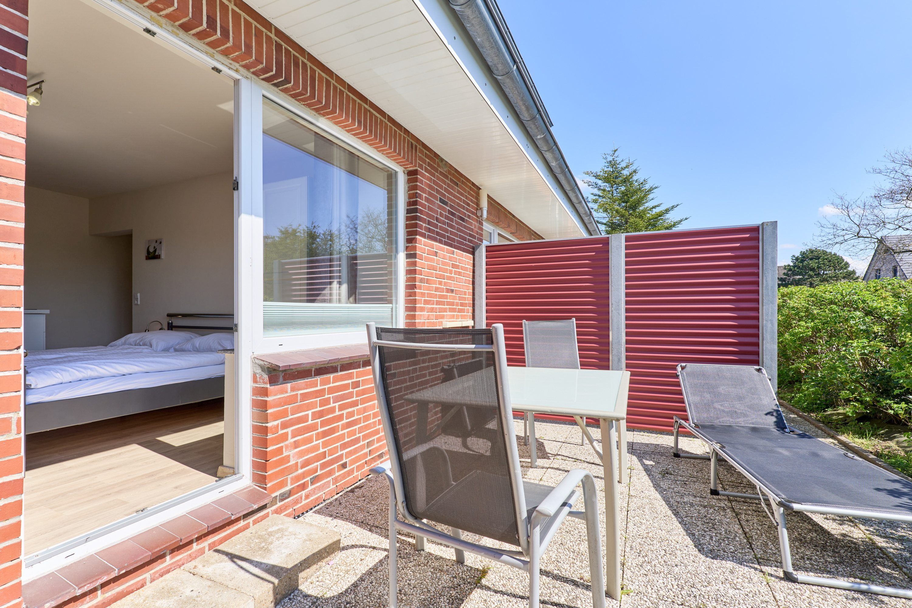 Auf der Terrasse mit einer Fläche von ca. 15 m² stehen Gartenmöbel zur Verfügung.