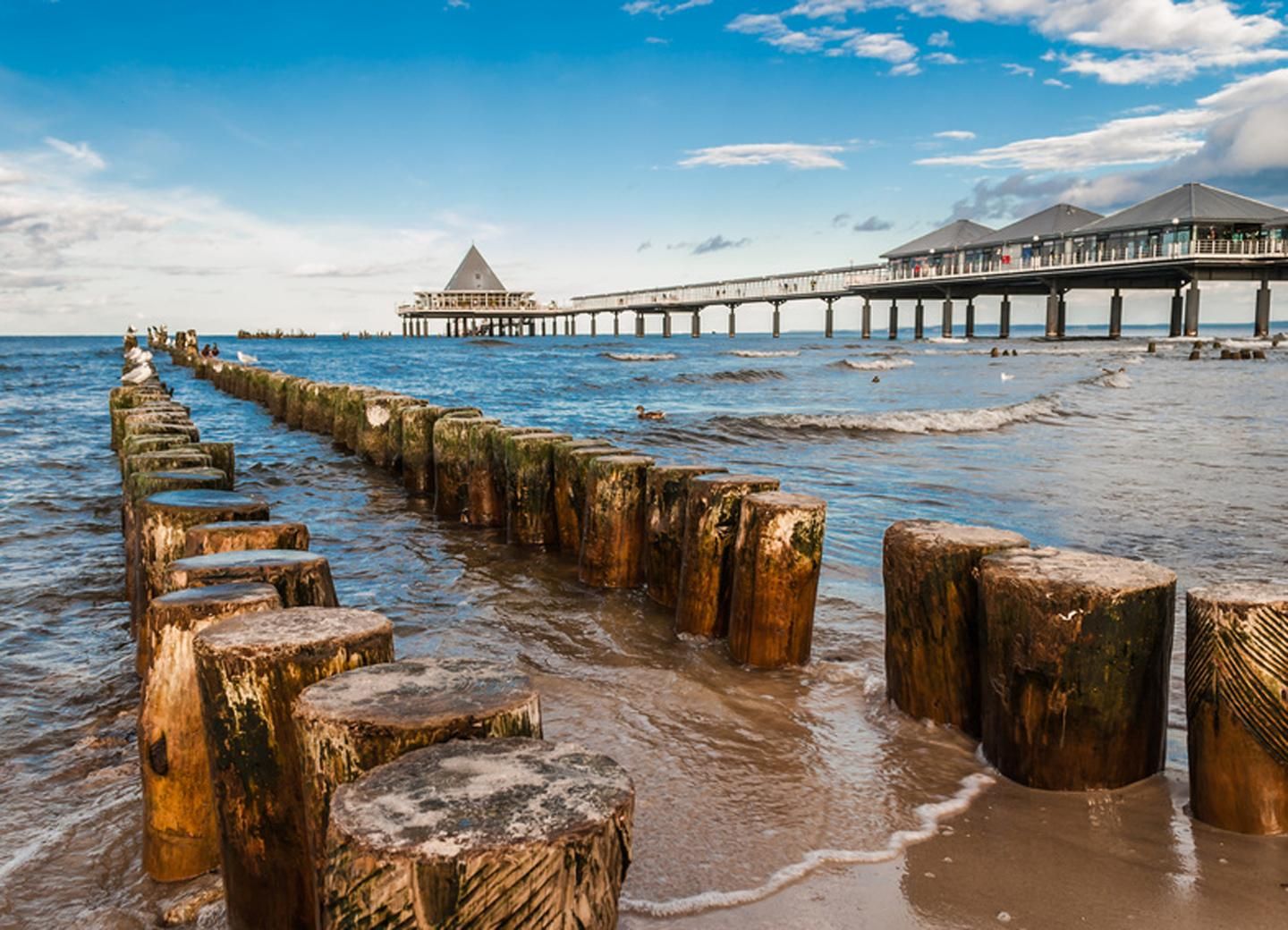 Heringsdorf, das „Nizza der Ostsee“, erwartet Sie mit 508 m langer Seebrücke – der längsten Kontinentaleuropas – mit Boutiquen, Café, Restaurant und traumhaften Sonnenuntergängen über der Ostsee. Prachtvolle Bäderarchitektur wie Villa Oechsler und Villa Achterkerke verleiht dem Ort historischen Charme. Der Baumwipfelpfad in den Wipfeln nahe dem Bahnhof bietet Panorama in 33 m Höhe und Natur pur. Kulturfans genießen Ausstellungen und Konzerte im Kunstpavillon und Kleinkunstzelt, sowie Open-Air-Musik im Sommer. Ruhe finden Sie in der idyllischen Kirche im Walde, eingebettet im Küstenwald. Heringsdorf vereint Strand, Architektur, Natur & Kultur – ideal für anspruchsvolle Feriengäste.