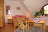 Das kleine gemütliche 1-Zimmer-Appartement für 1-2 Personen im Dachgeschoß ist ganzjährig mietbar und befindet sich im der dem Garten und dem Boddengewässer zugewandten Hausseite und bietet mit einem großen Gaubenfenster nach Nordosten, einem großen Fenster nach Osten und einem kleinen Fenster über der Miniküche den schönsten Rundblick in den Töpperhusgarten und auf den Bodden.