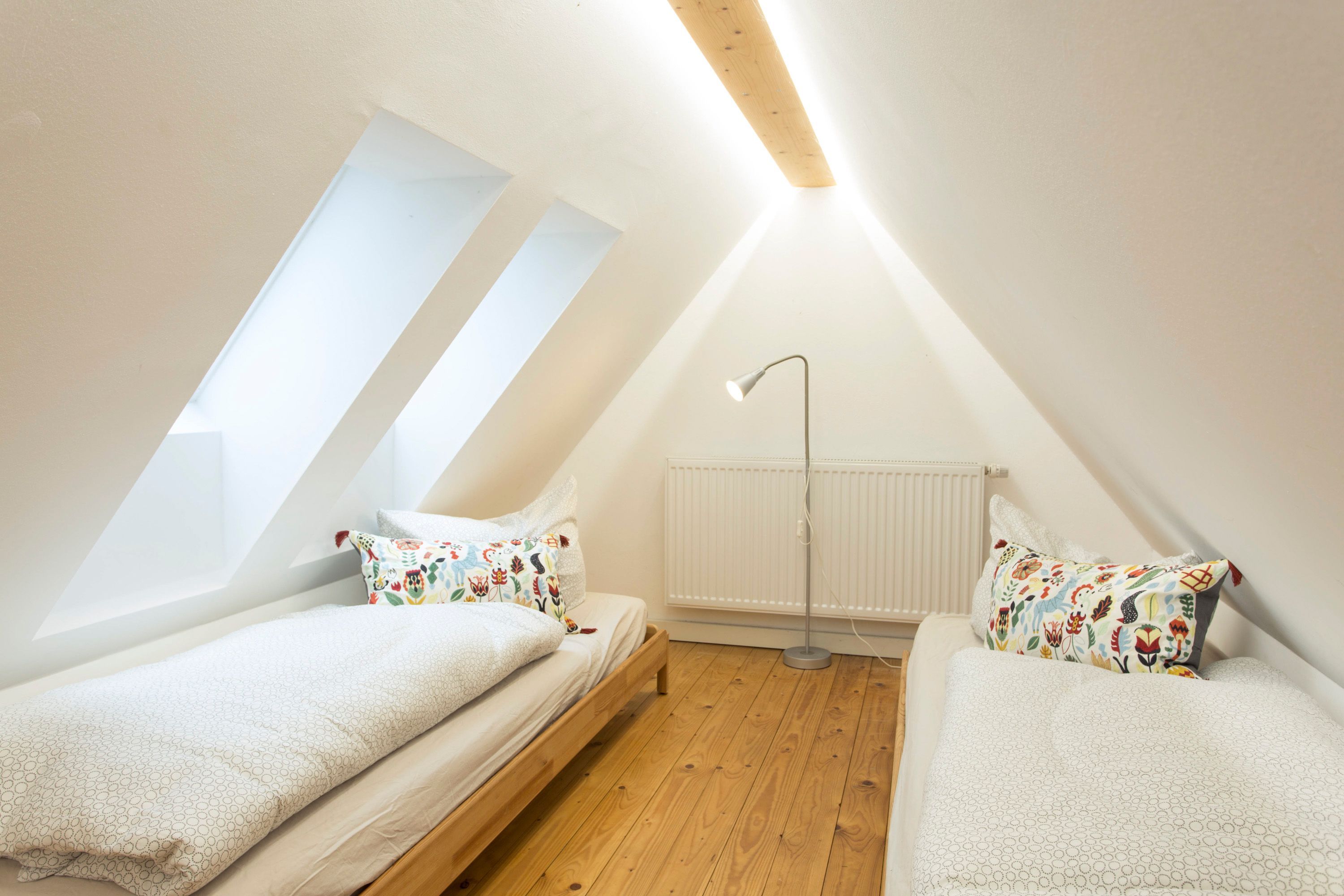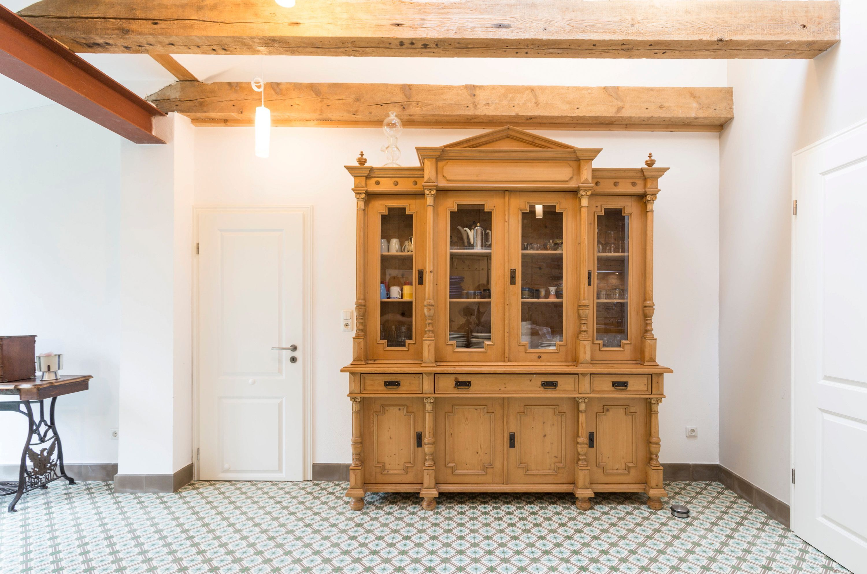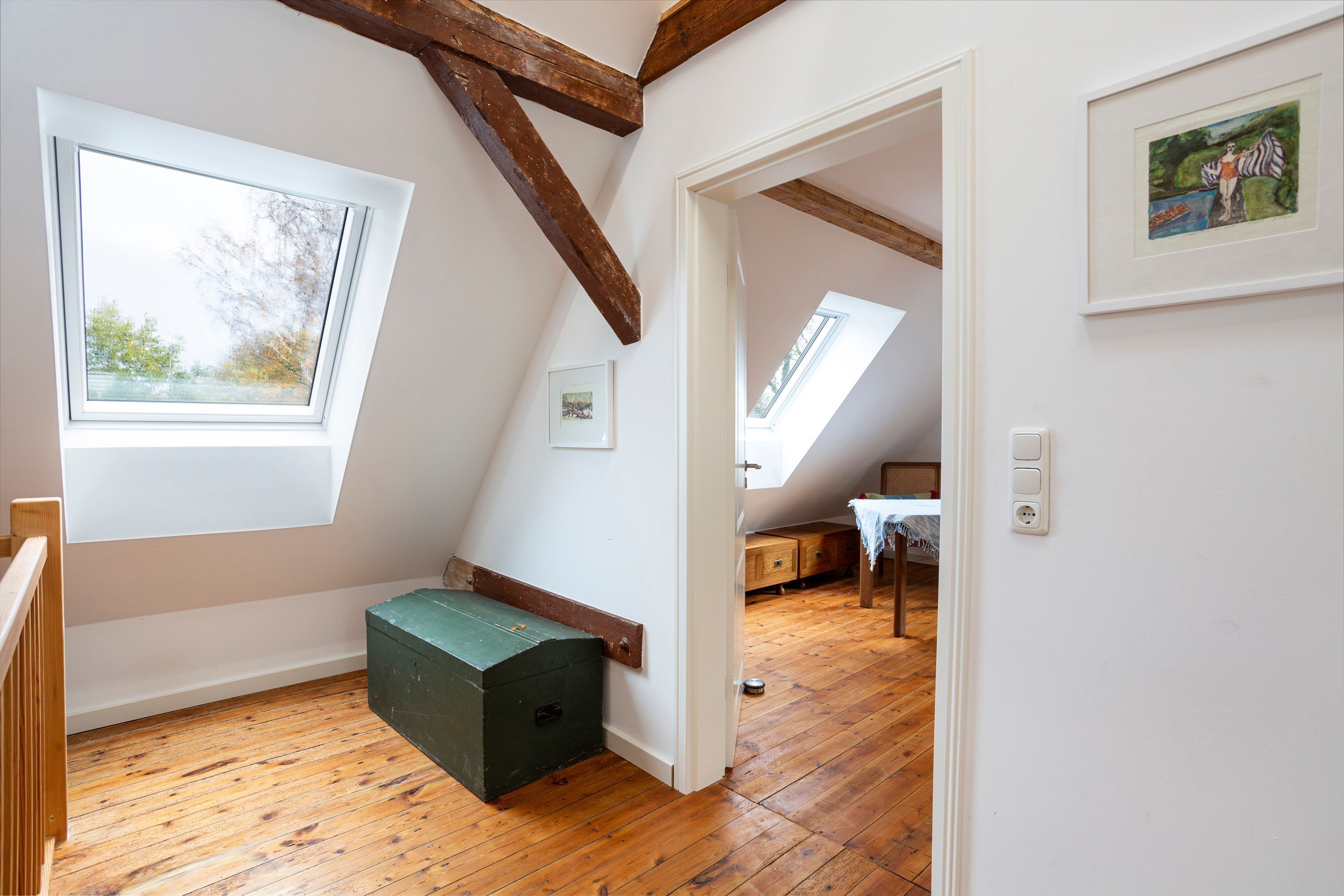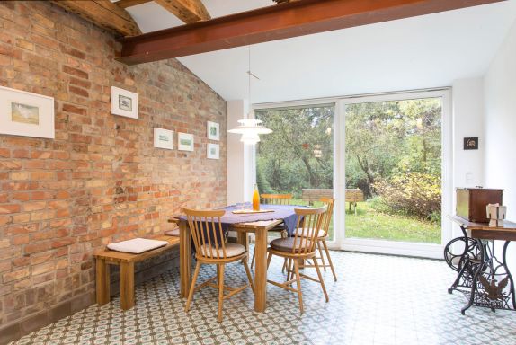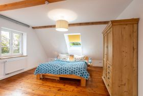 Rustikale Elemente treffen auf modernen Landhaus-Charme im Landhaus Merle. Auf 120 m² erwarten bis zu 8 Personen ein individuell eingerichtetes ehemaliges Bauernhaus. Das über 3 Ebenen angelegte Ferienhaus verfügt über 3 Schlafzimmer, eine große Küche mit Essbereich, ein Wohnzimmer mit Schlafsofa und zwei Bäder. Im Erdgeschoss betritt man das Landhaus über die voll ausgestattete Küche mit großzügigem Essbereich. Hier kann nach Lust und Laune gekocht und gebacken werden. Dafür stehen neben einem GasWokBrenner, Induktionskochfeld, Backofen und Kühlschrank mit Gefrierfach auch Kochutensilien für den täglichen Bedarf zur Verfügung. Das Wohnzimmer mit Schlafsofa (2x80x200) und TV, sowie das erste Schlafzimmer mit einem Doppelbett (160 x 200cm, getrennte Matratzen) und das Bad mit Dusche und WC befinden sich ebenfalls im Erdgeschoss. In der ersten Etage gibt es ein weiteres Bad mit Badewanne und WC sowie ein geräumiges Schlafzimmer mit Doppelbett (180 x 200cm, getrennte Matratzen) und Kleiderschrank. Über eine steile, schmale Leiter erreicht man den offenen Spitzboden in dem zwei weitere Einzelbetten (80x200) bereit stehen.