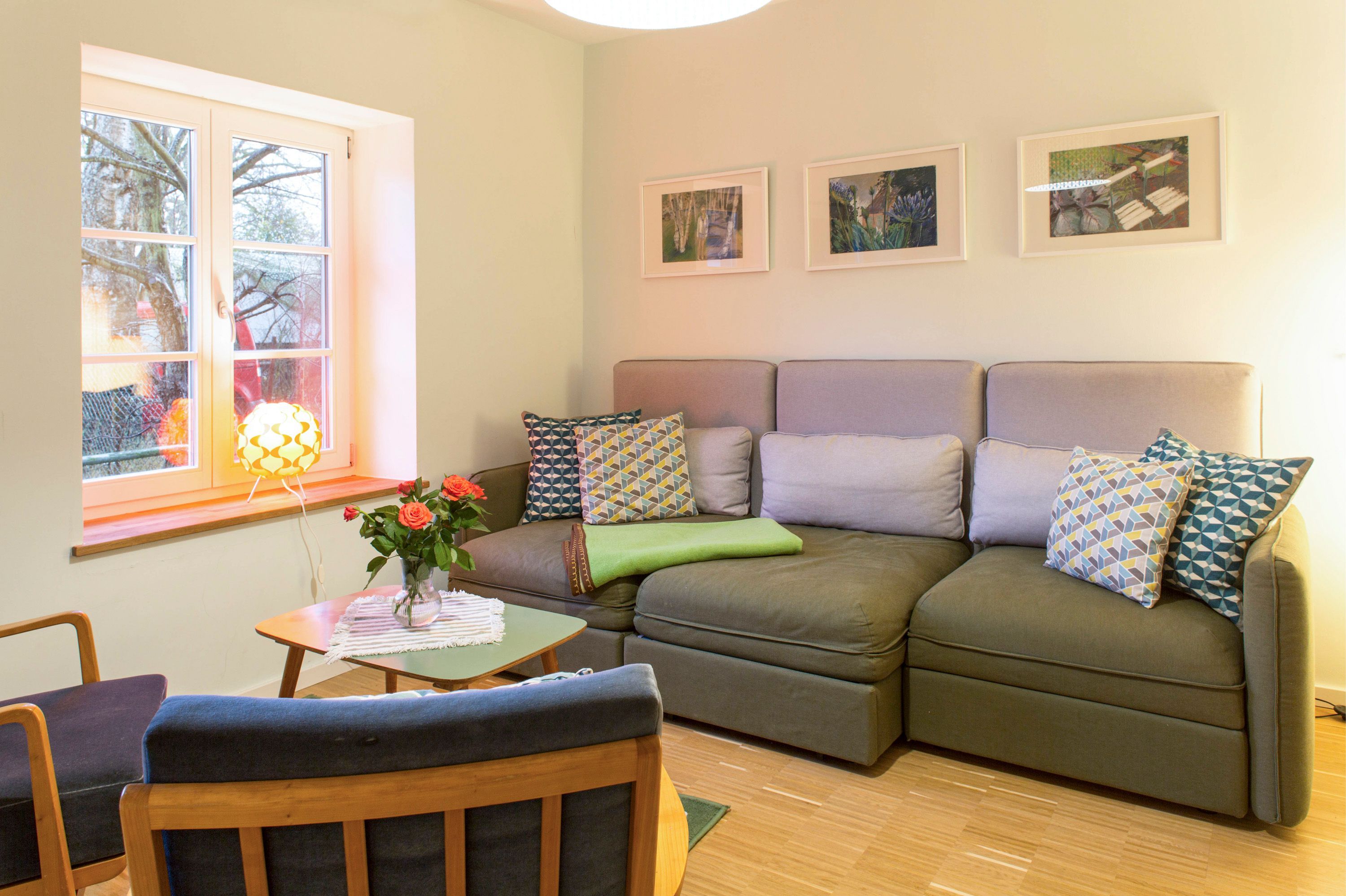 Der Fahrradschuppen, die Waschküche mit Waschmaschine und Trockner (gegen Gebühr), Sitzmöglichkeiten im Garten und der Grill können genutzt werden.