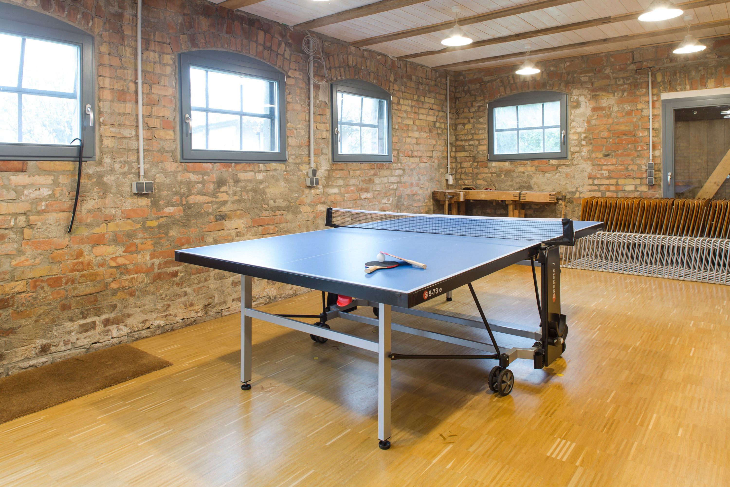 Im großen Gemeinschaftsraum im Erdgeschoss kann die Tischtennisplatte mit genutzt werden und im Schuppen kommen die Fahrräder trocken unter. Eine Waschmaschine und Trockner stehen gegen Gebühr in der Waschküche bereit. Im Außenbereich stehen Parkplatz, Sitzmöglichkeiten und ein Grill zur Verfügung.