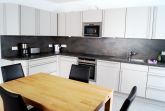 Die zum Wohnzimmer offene Küche ist vollständig ausgestattet, u.a. mit einem Induktions-Herd (4 Platten), einem Geschirrspüler, einem Kühlschrank, einem Gefrierfach, einer Mikrowelle, einer Kaffeemaschine und einem Wasserkocher. Zusätzlich sind in der Küche noch ein Handrührgerät mit Pürierstab und eine Küchenmaschine (zum raspeln).