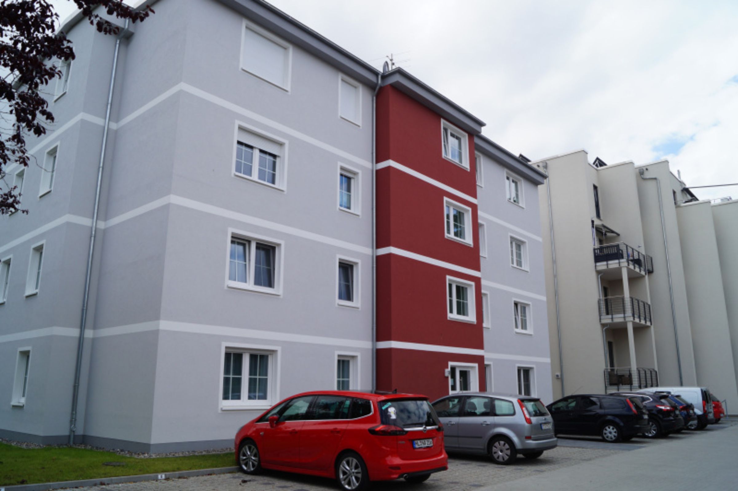 Zu der Wohnung gehört außerdem ein großer Süd-Balkon mit Sitzmöbeln und ein PKW-Stellplatz.