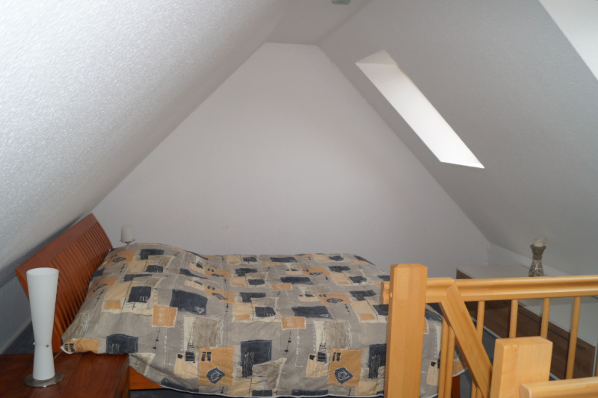 Das Schlafzimmer verfügt über ein Doppelbett und einen Flachbildfernseher. In der hellen Galerie (über eine Treppe vom Wohnzimmer erreichbar) befindet sich ein Doppelbett.