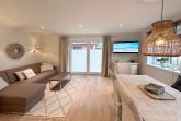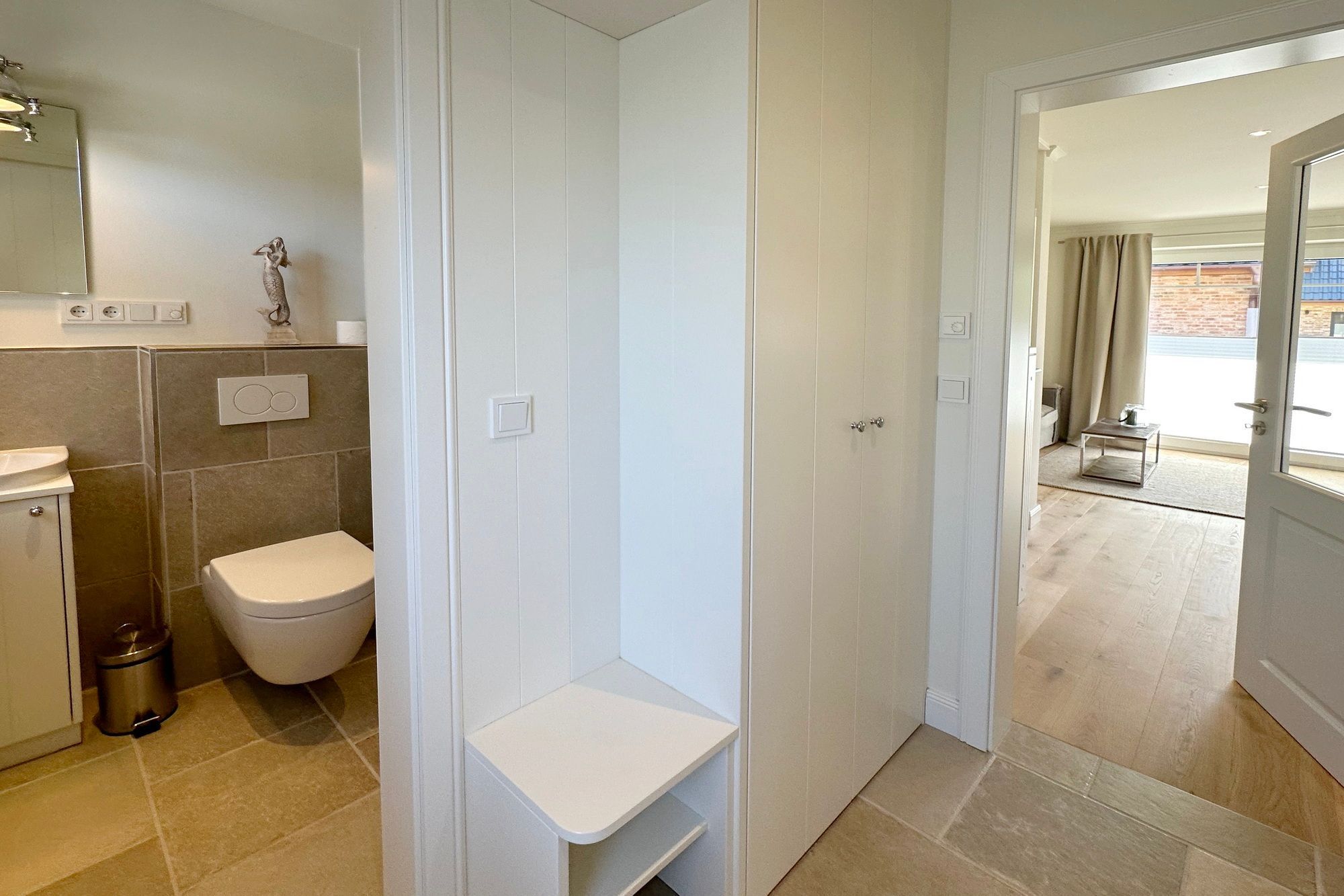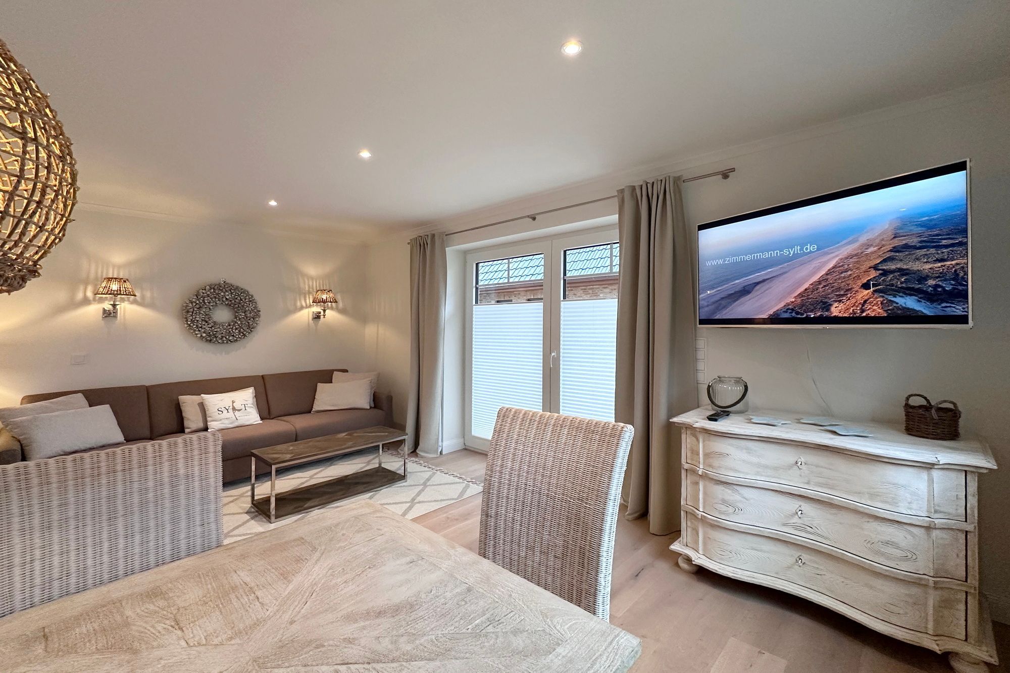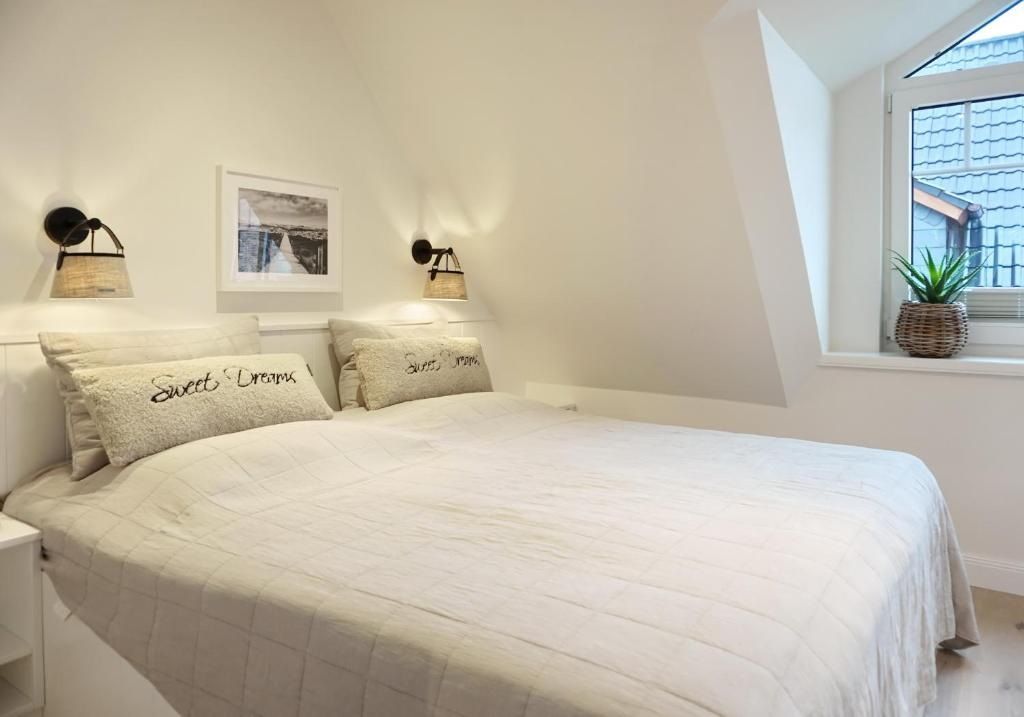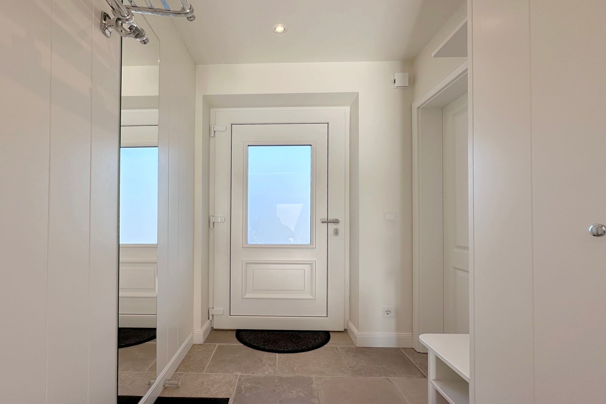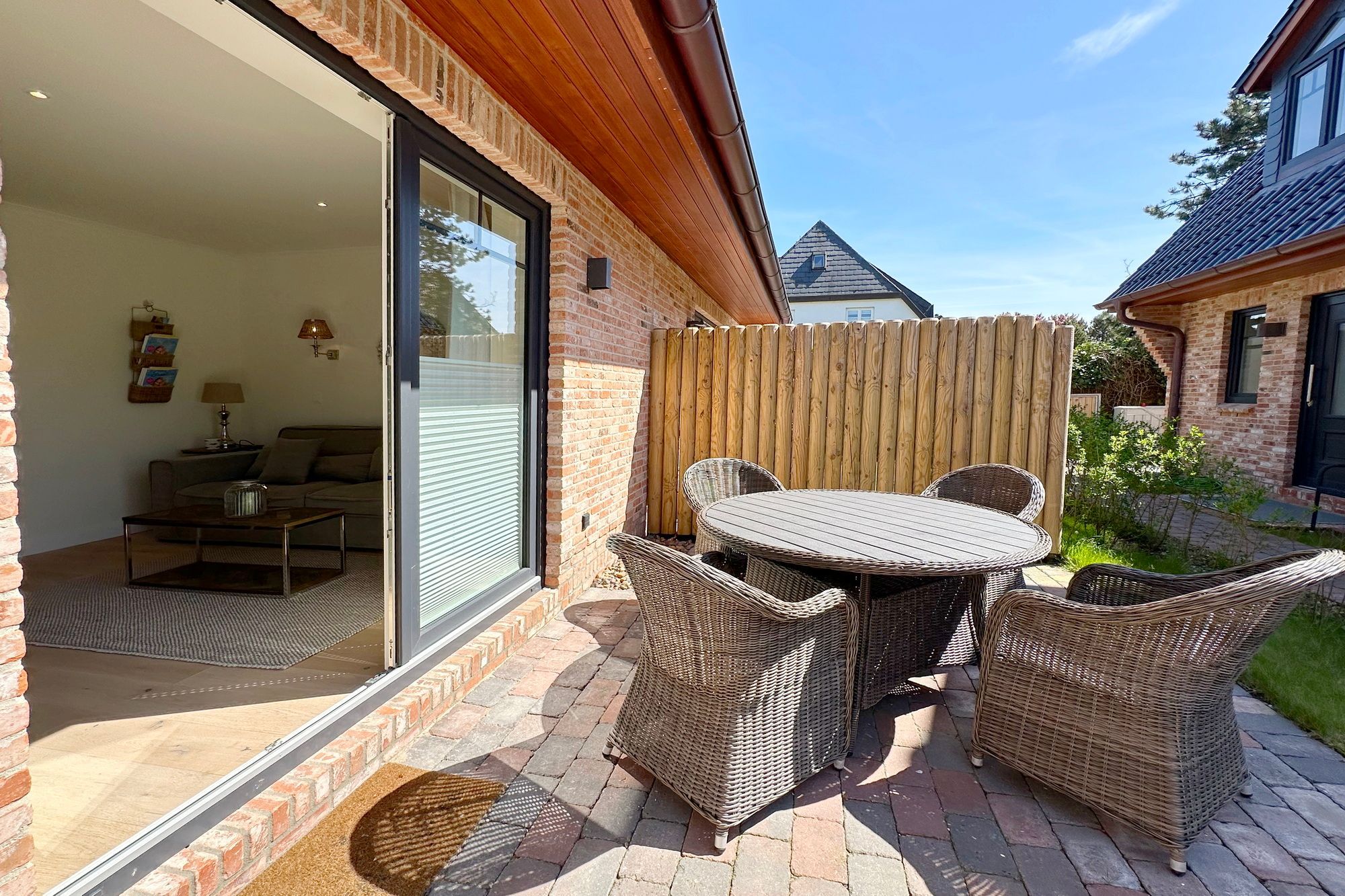 Das Ferienhaus Engels Hüs ist eine Doppelhaushälfte mit einer Nutzfläche von ca. 88m², die Platz für bis zu vier Personen bietet. Das Haus erstreckt sich über 2 Etagen, nämlich das Erdgeschoss und das Obergeschoss. Im Erdgeschoss befindet sich ein Wohnraum mit einem Flatscreen-TV, WLAN und einem Essbereich. Außerdem gibt es hier eine Küchenzeile mit einem Backofen und einer Mikrowelle, einem Induktionsherd, einer Geschirrspülmaschine und einer Nespressomaschine. Des Weiteren gibt es eine Terrasse in südlicher Ausrichtung mit Gartenmöbeln. Ein Badezimmer mit Dusche und WC sowie eine Waschmaschine sind ebenfalls im Erdgeschoss vorhanden.