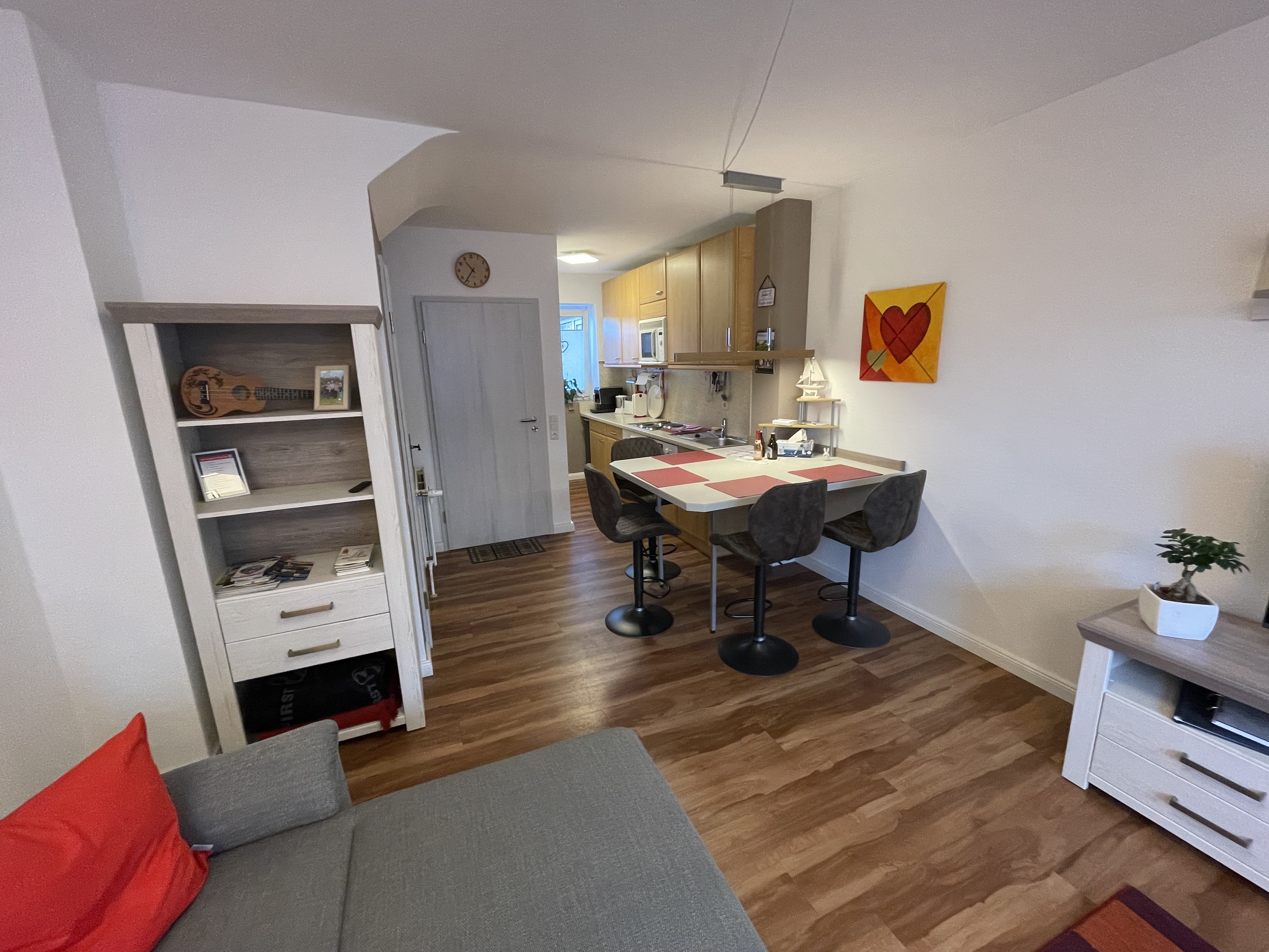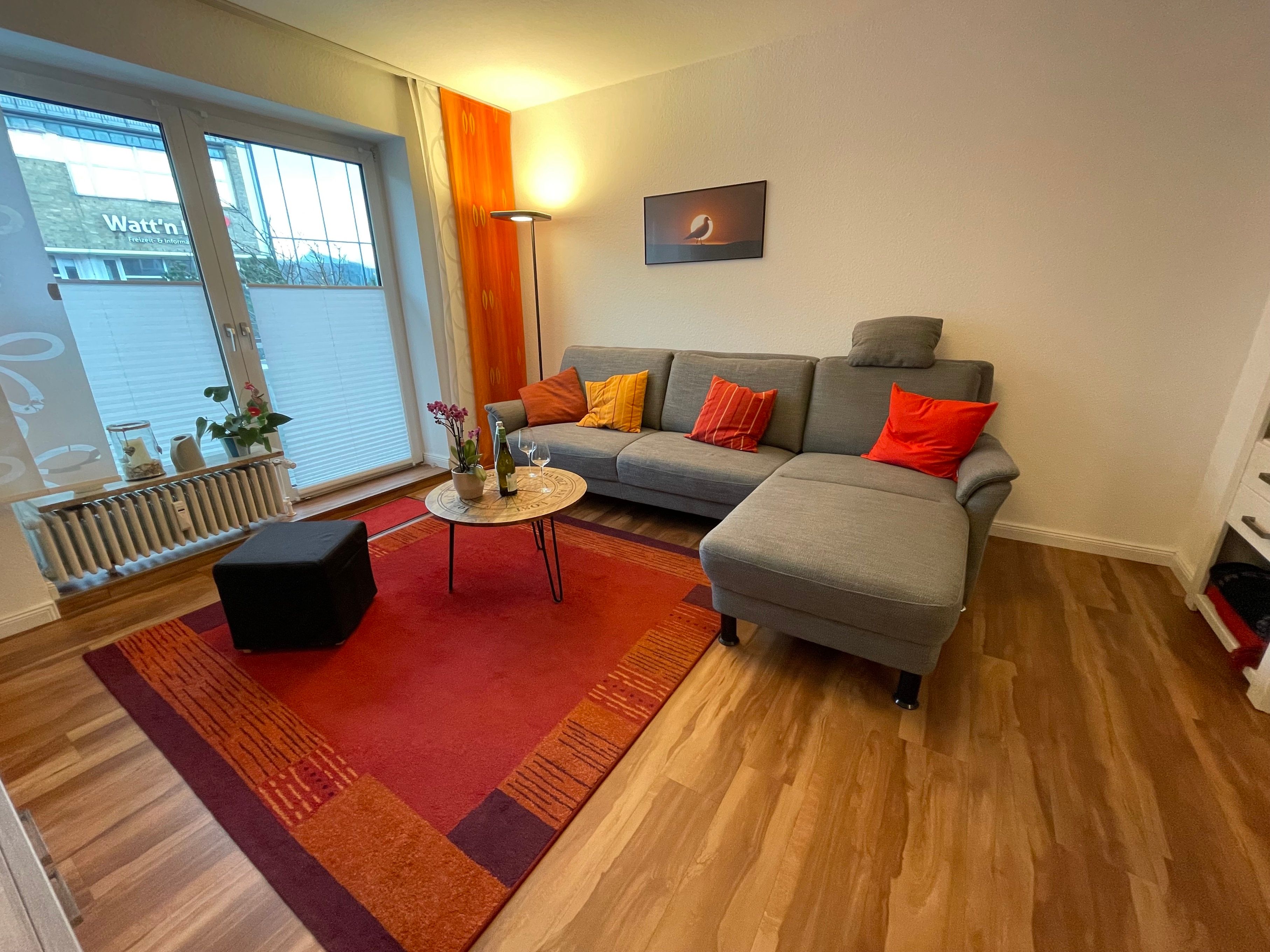 Den Gästen der zwei Wohnungen Meeresidyll und Watt'n Idyll steht im Zeitraum Mai bis September ein gemeinsamer Strandkorb am Hauptstrand kostenlos zur Verfügung. WLAN, Babyhochstuhl, Waschmaschine und Wäschetrockner sind kostenlos vorhanden. Zur Wohnung gehört ein fester Parkplatz in ungefähr 200 m Entfernung. Bitte melden Sie dies beim Gastgeber an. Haustiere sind in dieser Unterkunft leider nicht erlaubt.
