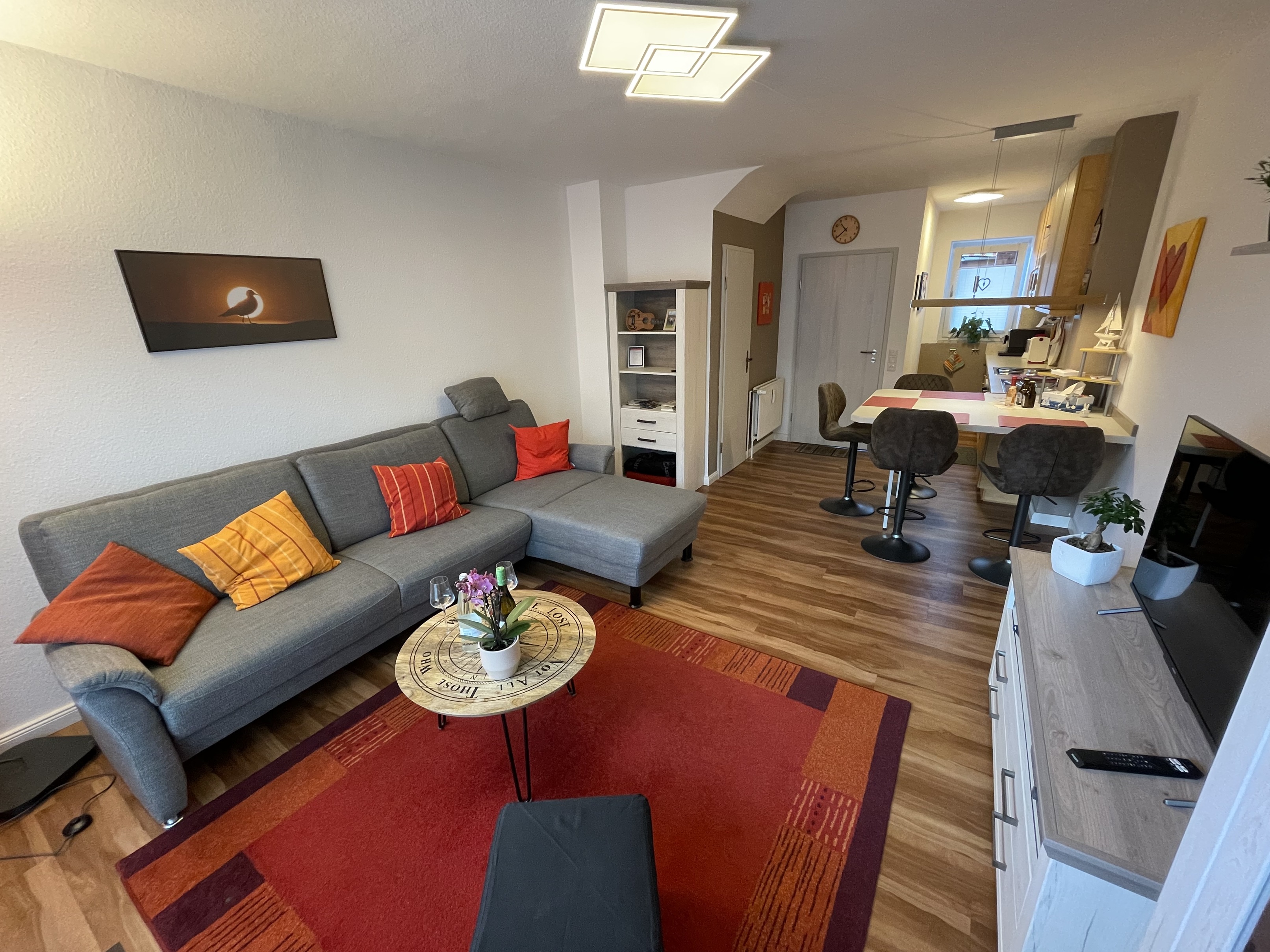 Die gemütliche Maisonettewohnung Watt'n Idyll finden Sie gegenüber dem Gäste- und Veranstaltungszentrum Watt'n Hus, direkt am Deich. Der Hauptstrand, das Wellenbad & Spa Meerzeit Büsum, das Ortszentrum mit netten Geschäften, Cafés und Restaurants sowie der Hafen liegen in unmittelbarer Nähe. Die beiden direkt nebeneinander liegenden Wohnungen Watt'n Idyll und Meeresidyll bieten die Möglichkeit, gemeinsamen Urlaub mit Freunden und Familie zu machen. Bett- und Handtuchwäsche kann für 25,-- EUR pro Wäschepaket hinzugebucht werden.