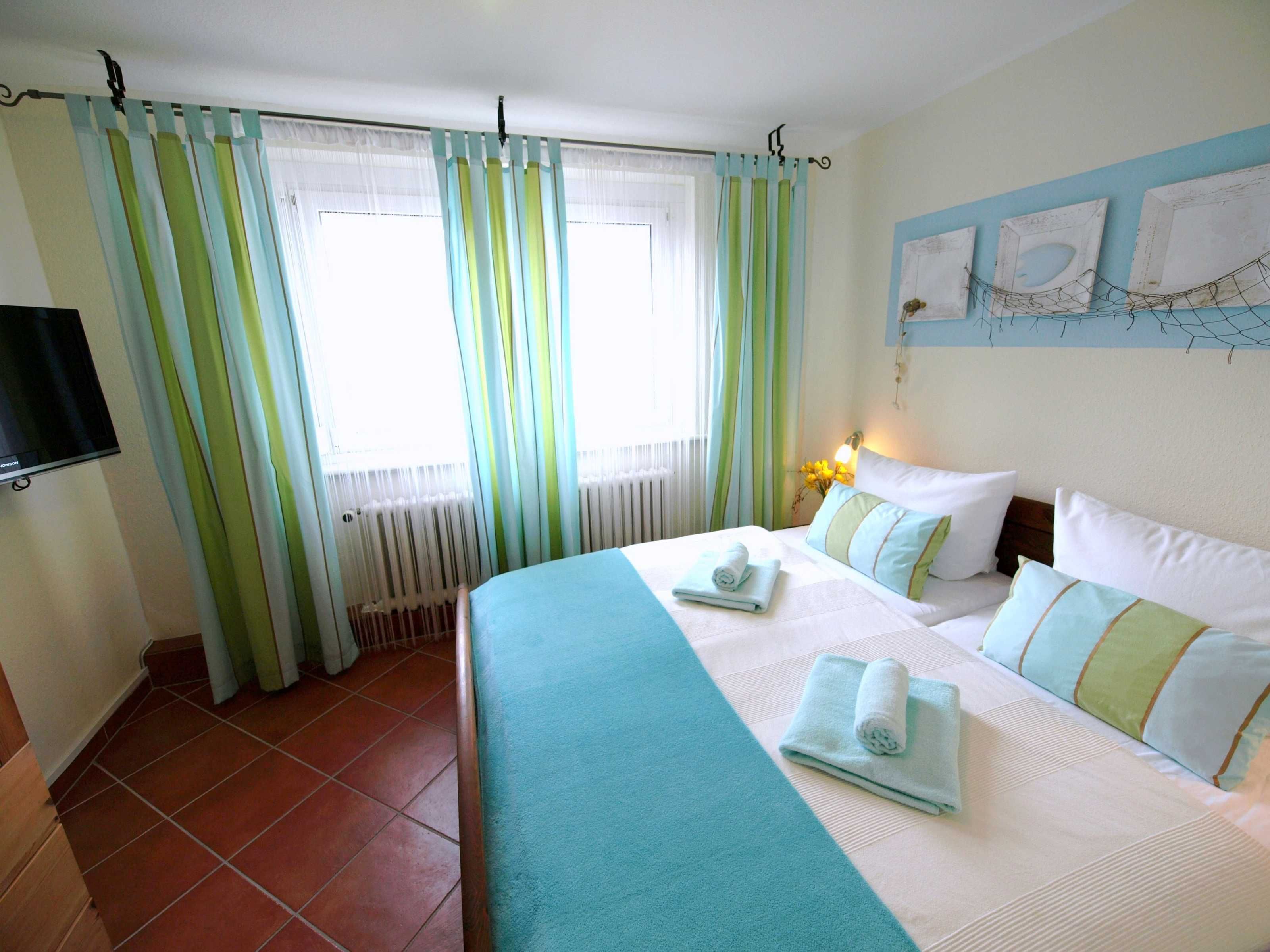80 Meter Strandentfernung - Ferienwohnung ca. 75 qm für max. 5 Personen im Erdgeschoss mit direktem Zugang zum Garten und eigener Sitzecke im Garten. 2 Schlafzimmer, 1 Schlafzimmer mit Doppelbett und zusätzlichen TV, 1 Kinderzimmer mit Etagenbett und einem extra Einzelbett (100 x 200 cm). Separate Küche, Wohnzimmer mit Essecke Blue Ray/DVD Player, 2 moderne, neue Duschbäder. 1 kostenloser PKW-Stellplatz auf dem Grundstück. E-Bike Stellplätze, Nichtraucher. Keine Haustiere. WLAN kostenlos.