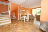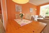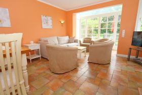 Die schöne Ferienwohnung Thomas Mann liegt direkt am Wald Friedrichshain und verfügt über eine große Terrasse für 6 Personen. Die harmonischen Farbnuancen im Wohnzimmer passen wunderbar zur hellen Einrichtung. Das Appartement verfügt über eine gut ausgestattete separate Küche, einen Soutterrain-Bereich und ein Obergeschoss mit modernem Badezimmer mit Duschwanne und zwei Waschbecken und über ein helles Schlafzimmer. Im Soutterain-Bereich befindet sich ebenfalls ein großes Badezimmer mit zwei Waschbecken und einer Dusche.