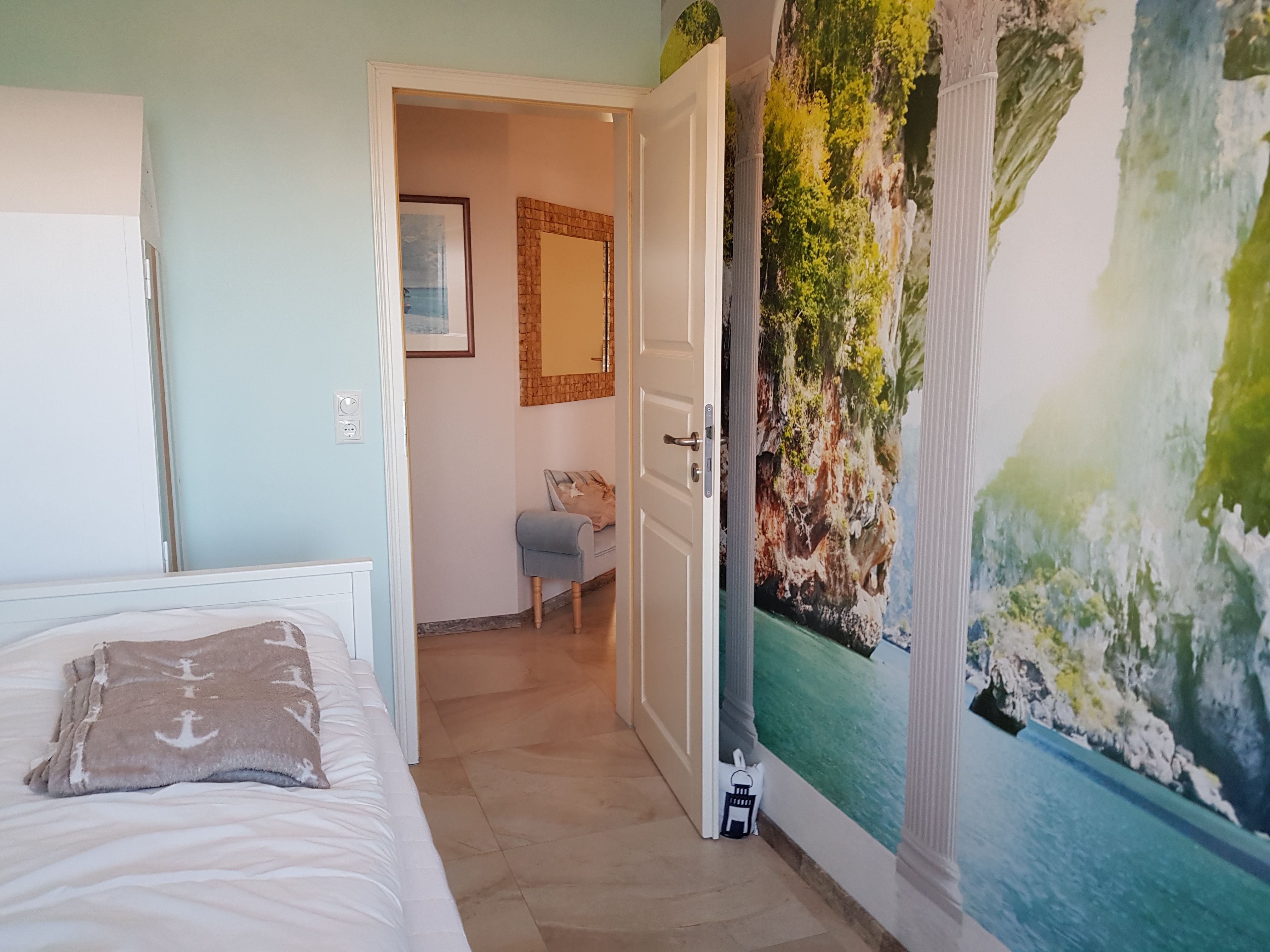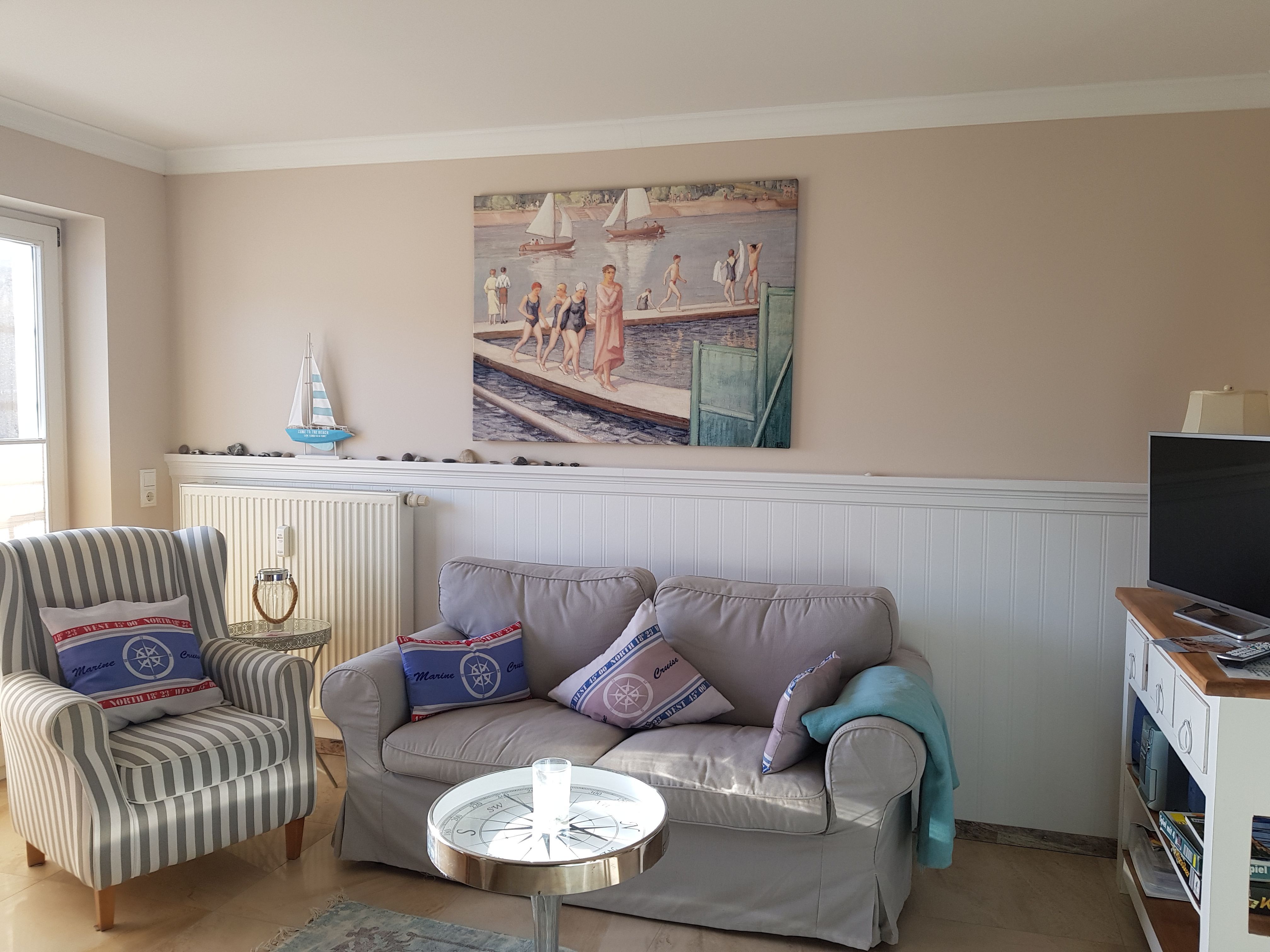 Unser super gemütliches maritimes Appartement verfügt über 2 Schlafzimmer, einmal Doppelbett und einmal Einzelbett, eine vollausgestattete Küche mit allen notwendigen Geräten. Sauna und Schwimmbad befinden sich im Haus und sind inklusive. Der wunderbare Balkon ermöglicht einen Blick zum Salzhaff und zur Ostsee. Der Tiefgaragenplatz für Ihr Auto ist ebenfalls inkl.