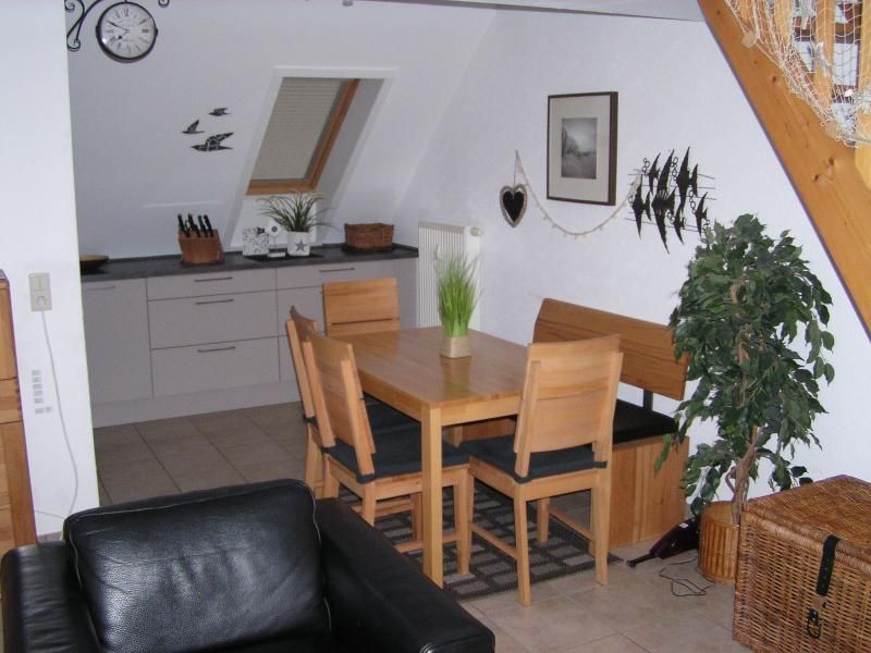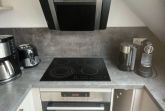 Die Küche wurde im März 2017 komplett erneuert. Es gibt jetzt einen größeren Kühlschrank mit einem extra Gefrierfach. Unter dem Ceranfeld tut ein Kompaktbackofen seinen Dienst, der neben Heißluft und Unter/ Oberhitze auch über eine Mikrowelle verfügt. Ein Geschirrspüler und ein vollintegrierter Waschtrockner bieten Ihnen weiteren Komfort. .