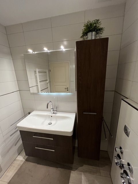 Das Bad wurde im Januar 2015 neu gefliest und mit hochwertigen Badmöbeln ausgestattet.