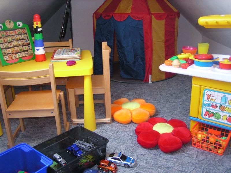 Im Obergeschoss ist der Spitzboden mit 3 Einzelbetten und einer Kinderspielecke.
