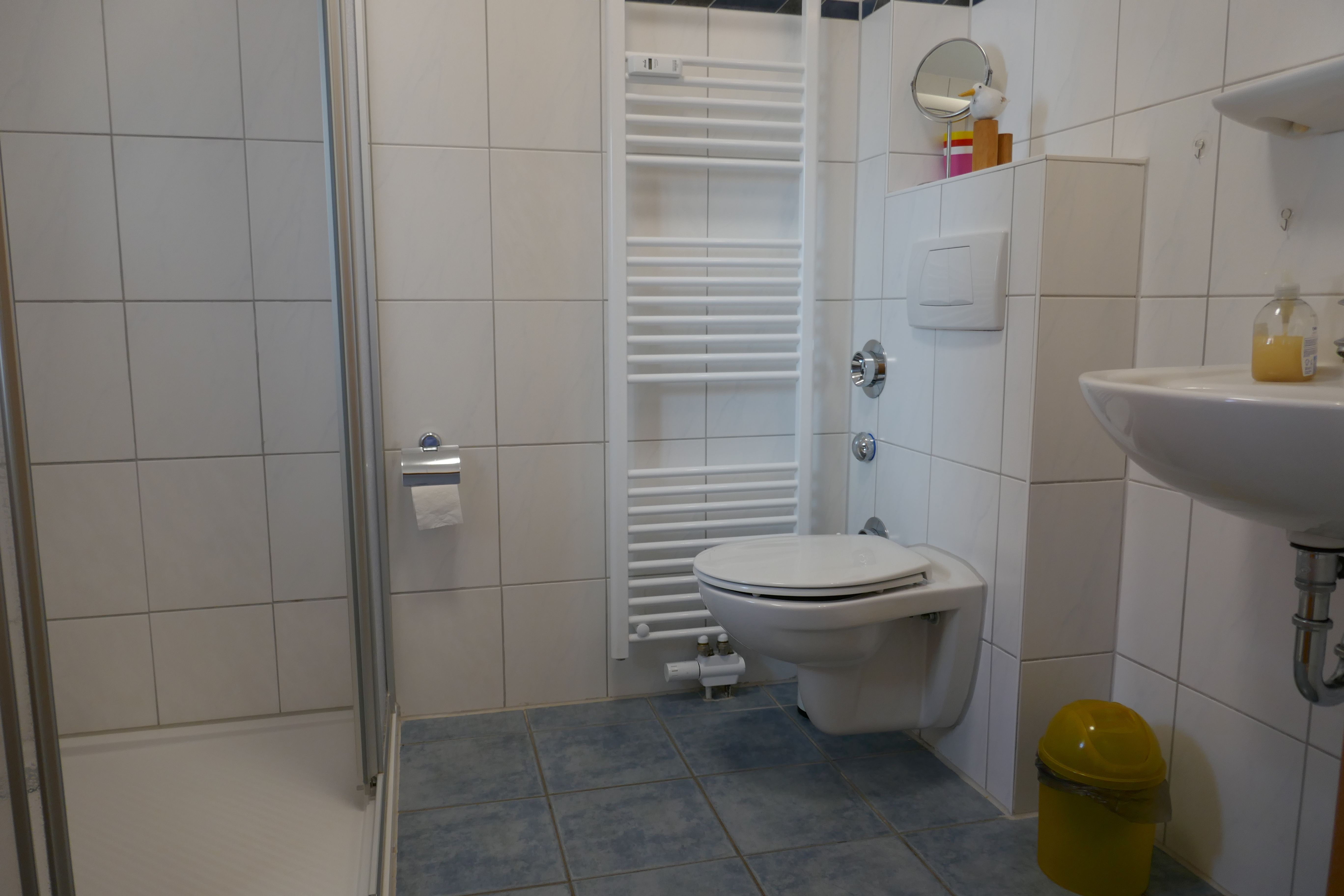 Ein Wohnzimmer mit modern ausgestatteter Küchenzeile mit Backofen und Mikrowelle und DU/WC befinden sich auf der ersten Ebene. Ein Schlafzimmer mit einem Doppelboxspringbett und ein Schlafzimmer mit zwei einzelnen Boxspringbetten liegen eine Treppe höher. Kinderbett und Hochstuhl sind vorhanden, Bettwäsche bitte mitbringen oder mieten - 20.00 Euro/Pers.,Balkon mit Blick zum Salzhaff, Tiefgaragenstellplatz inklusive, Sauna (3 x wöchentl.) und Schwimmbad im Haus und kostenfrei nutzbar, Solarium ebenfalls im Haus gegen Entgelt.