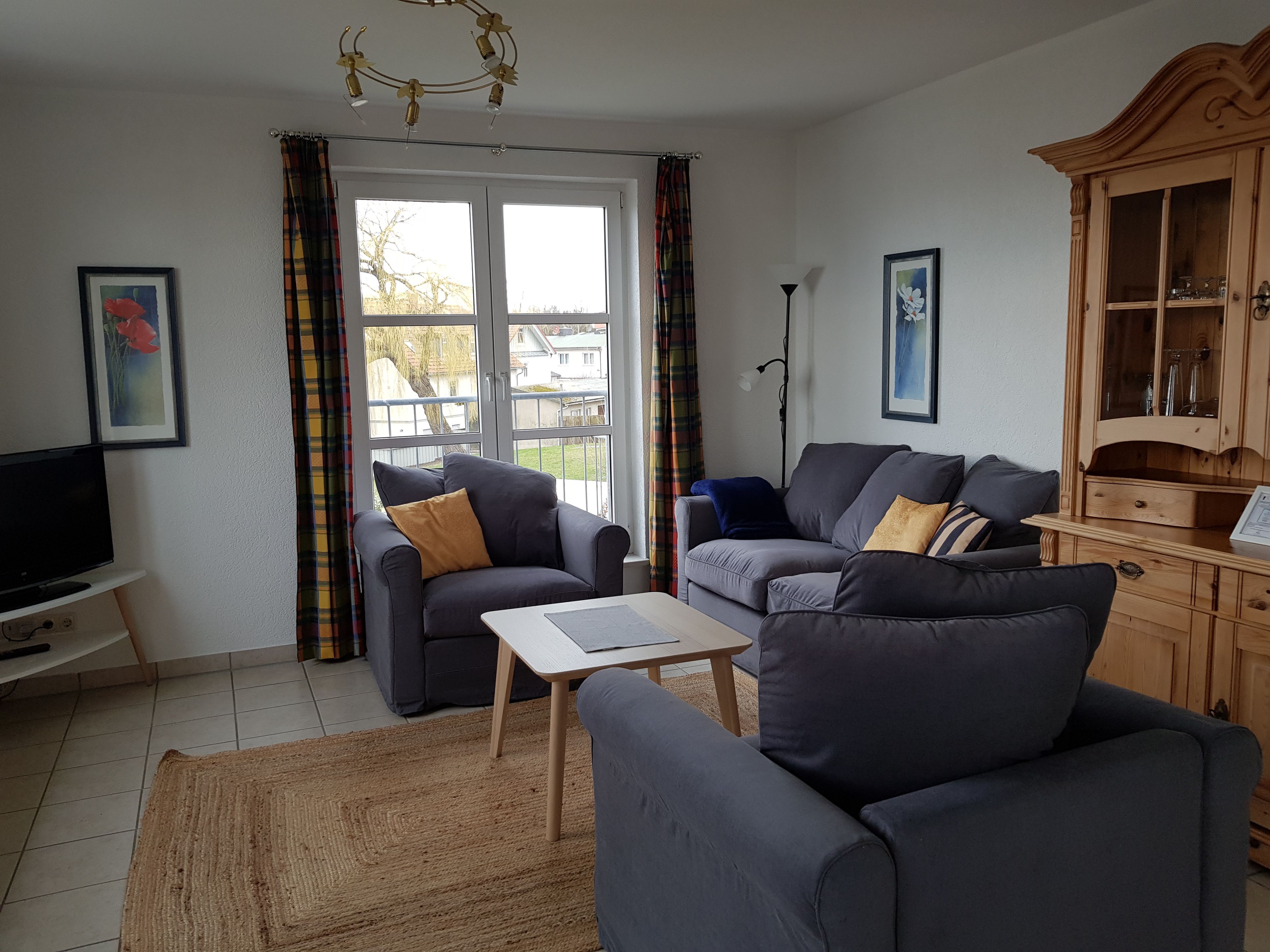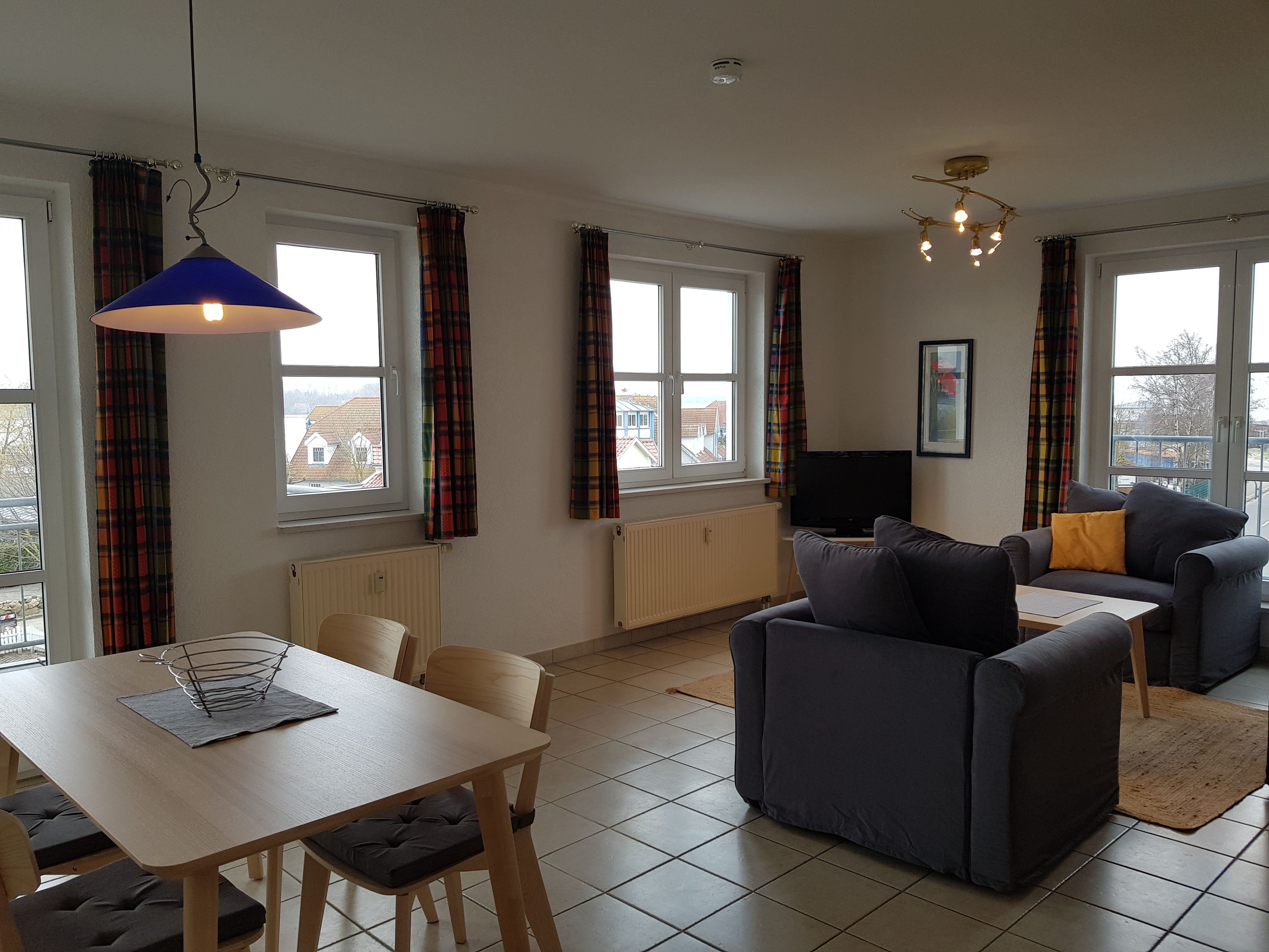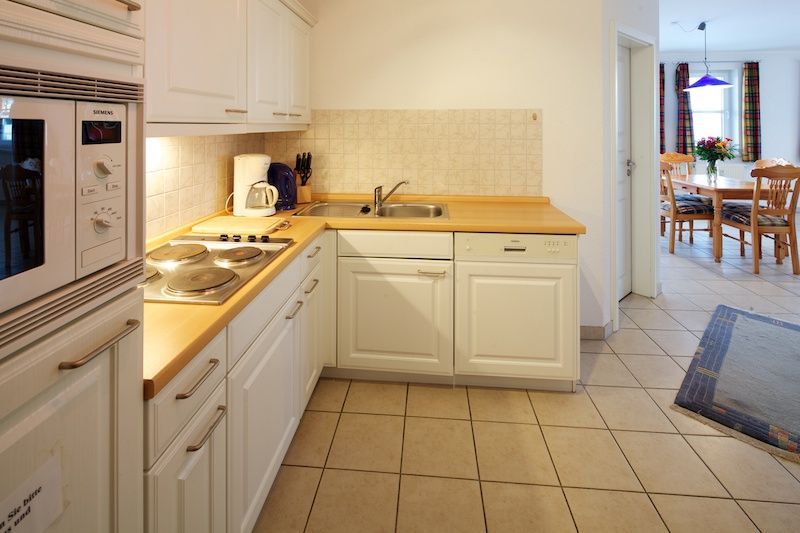 1 Schlafzimmer 2 Betten, Bettwäsche bitte mitbringen oder mieten - 20.00 Euro/Person für das Wäschepaket, Küchenzeile-Geschirrspüler, Mikrowelle,kein Backofen, Balkon, Schwimmbad und Sauna i.Kurh.,Haffblick