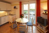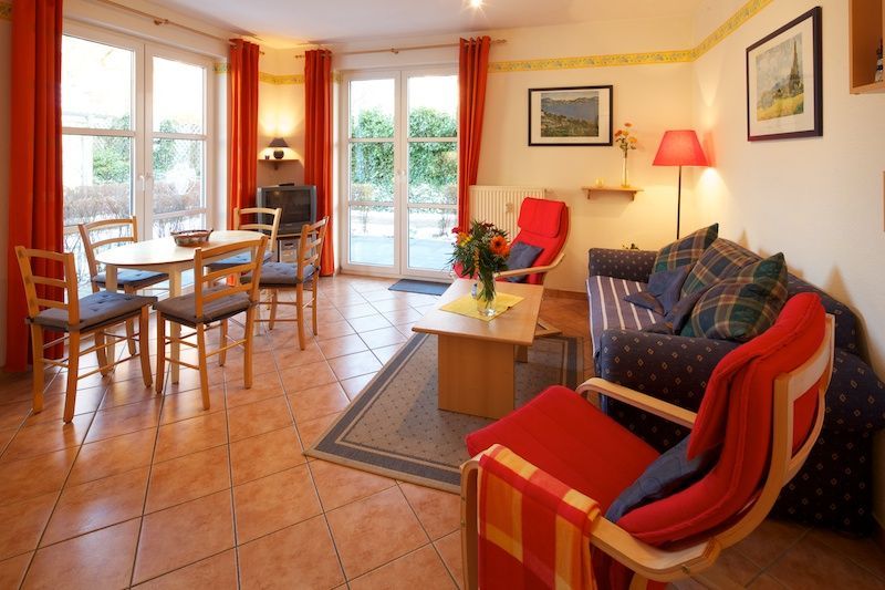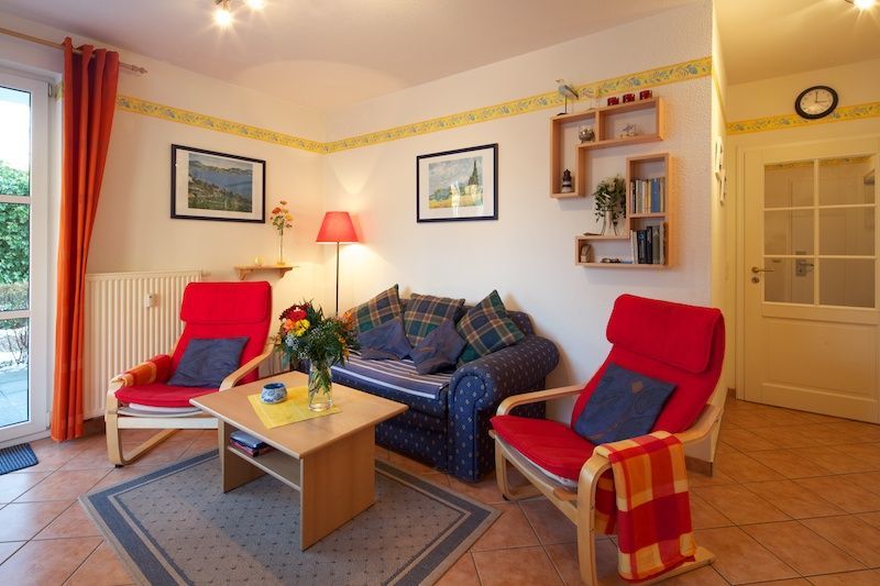 Die gemütliche,komfortabel in mediteranen Farben gehaltene Ferienwohnung (EG) mit hauseigenem Schwimmbad (täglich geöffnet), Sauna (Die., Fr., Sa.), Tiefgarage,W-lan (inclusive) befindet sich in schöner, ruhiger unmittelbarer Strandlage zw. Ostsee u. Salzhaff (ca. 3 Geh-Min.). Cafe u. Bäcker im Haus. Waschmaschine und Trockner gegen Gebühr über die Kurverwaltung. Die EG-Whg. ist komfortabel u. umfangr. ausgestattet. (Geschirrspüler, Wasserkocher, SAT-FlachbildschirmTV, Radio mit CD-Player, Fön, Bügeleisen usw. ) Blick von gr. Terrasse auf d. Salzhaff. NR