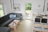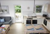 Zum Außenbereich der Ferienhaushälfte gehören eine Terrasse mit Gartenmöbeln, eine kleine Grünfläche und 1 Stellplatz für Ihren PKW.